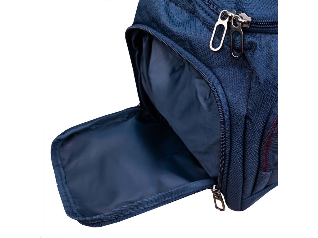 široký vstup do hlavního prostoru přední kapsa na dvoucestný zip boční kapsa na zip vnitřní kapsa odnímatelný popruh přes rameno s výstelkou proti otlakům 2 ucha lze sepnout k sobě polstrovanou rukojetí popruh pro nasunutí na madlo cestovního kufru