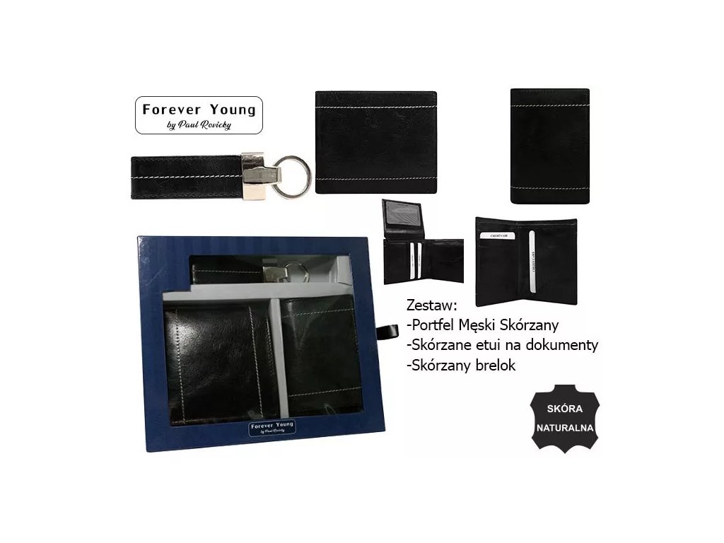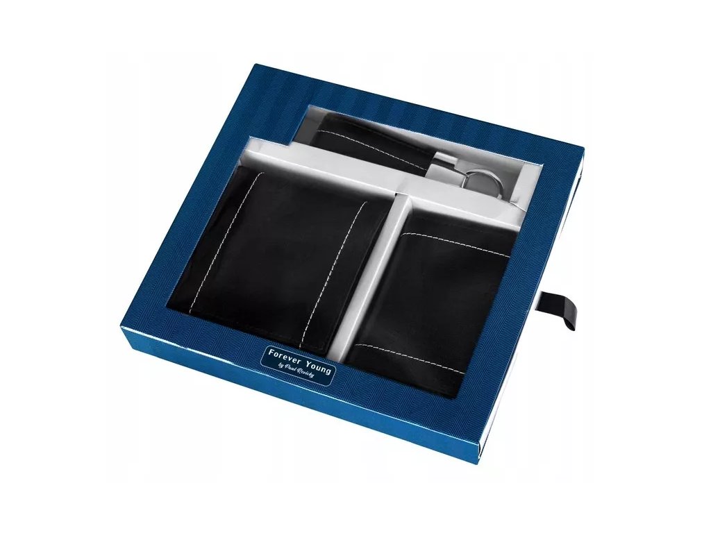 Trojdílná dárková sada: pánská peněženka, pouzdro na karty a klíčenka z pravé kůže 4U CAVALDI ZECAV-03