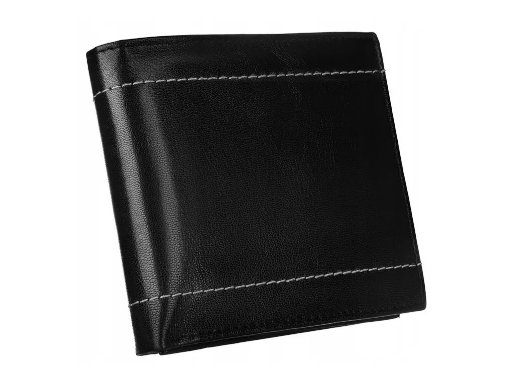 Tato pánská peněženka je praktická a stylová a nabízí mnoho přihrádek na karty, bankovky a mince. Její promyšlený design zajistí, že všechny vaše nezbytnosti budou mít své místo. Klasická černá kůže v kombinaci s bílým prošíváním jí dodává nadčasovou eleganci.