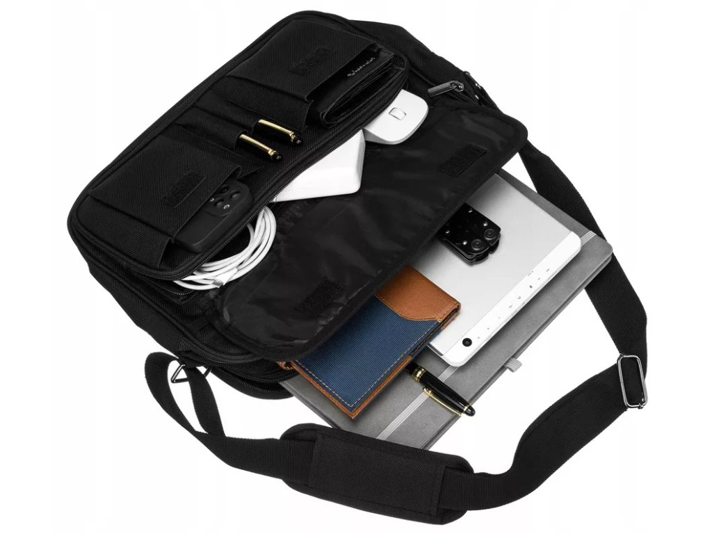 Díky dvěma prostorným přihrádkám najdou své místo všechny potřebné věci. Snadno se do ní vejde tablet, peněženka, telefon a dokumenty, vše bude uspořádané a snadno dostupné.