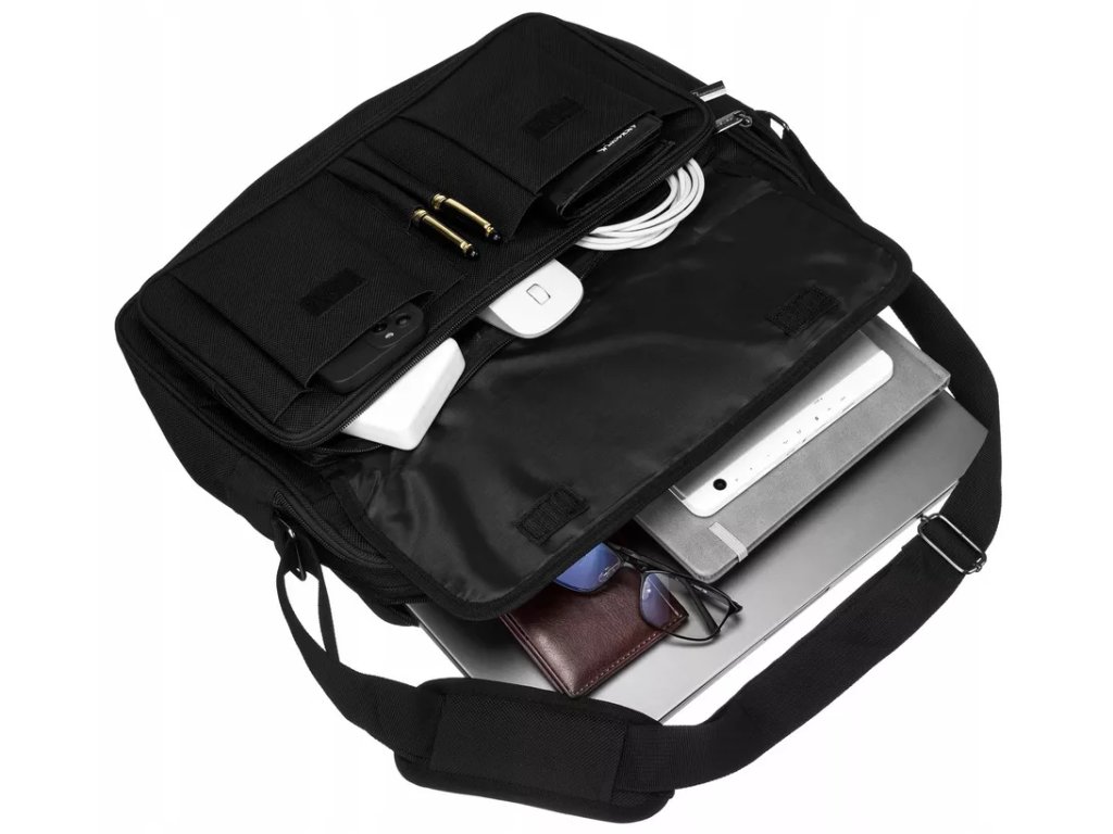 Díky dvěma prostorným přihrádkám najdou své místo všechny potřebné věci. Snadno se do ní vejde tablet, peněženka, telefon a dokumenty, vše bude uspořádané a snadno dostupné.