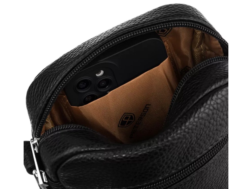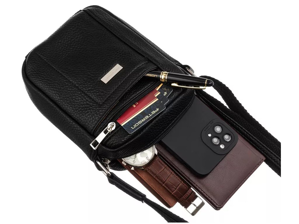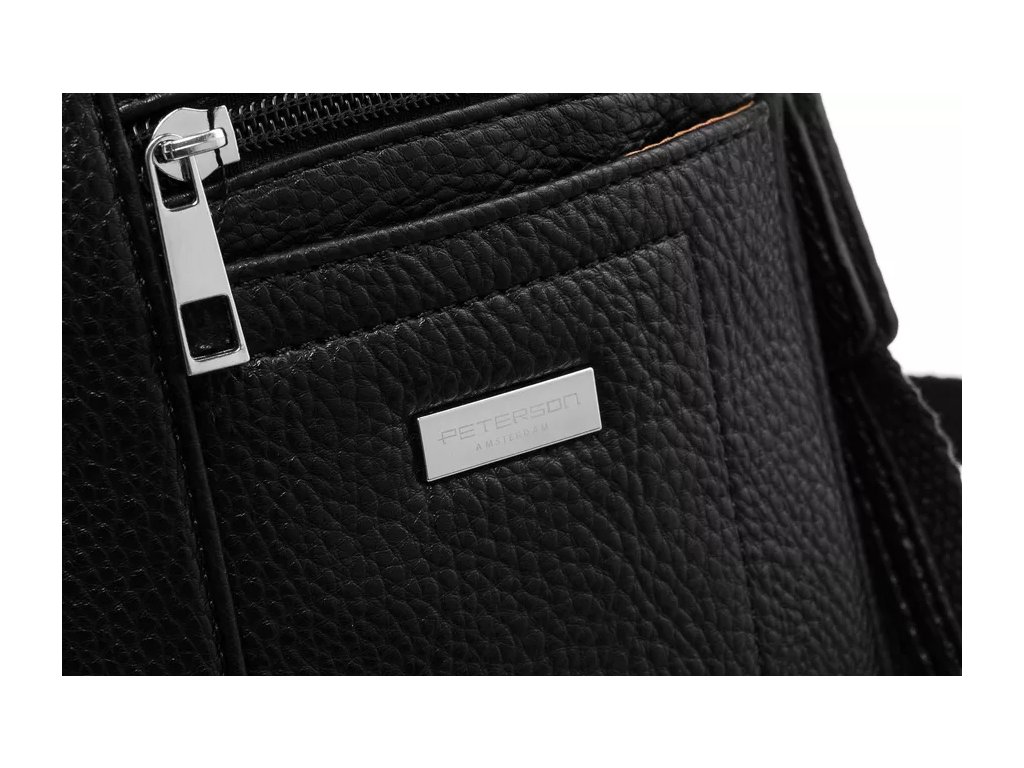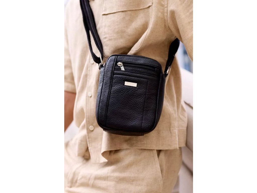 - Taška pro muže všech věkových kategorií | Jednokomorová brašna uzavíratelná na zip. Veškeré kování v tašce je v klasické stříbrné barvě, což vytváří skvělý kontrast k černé barvě materiálu