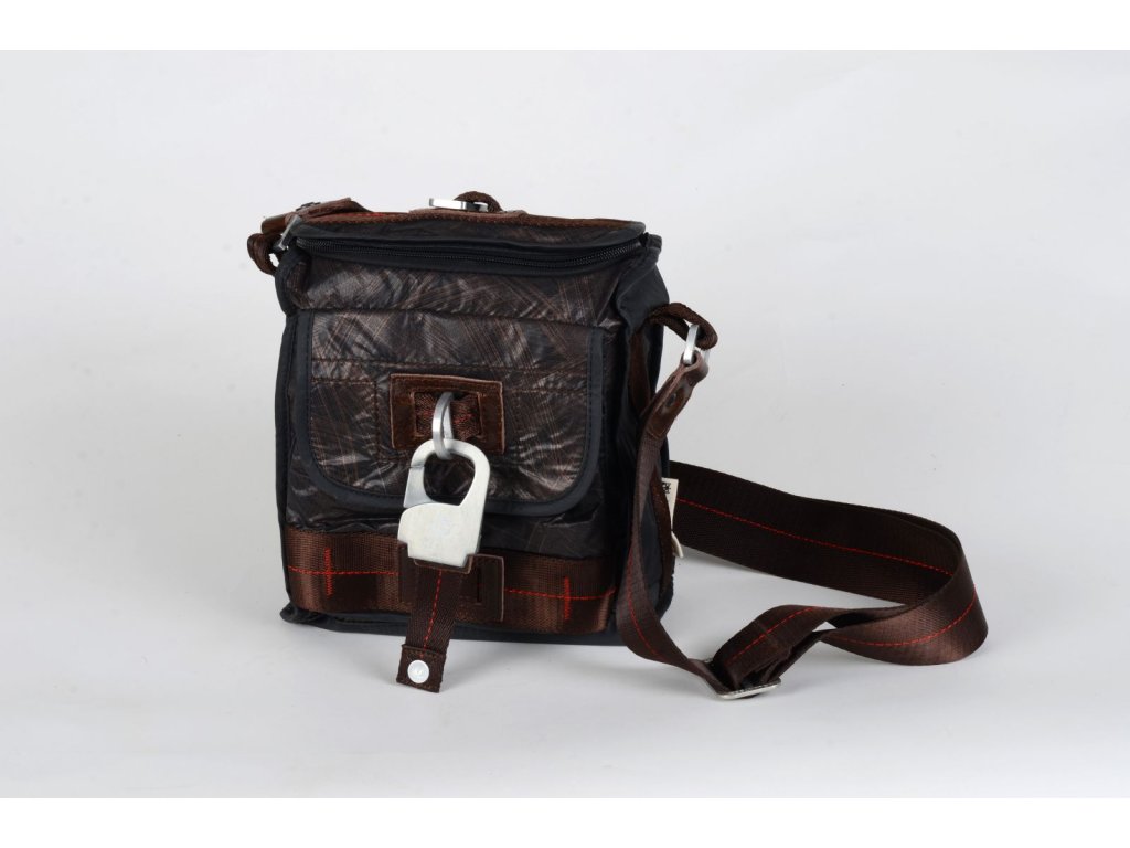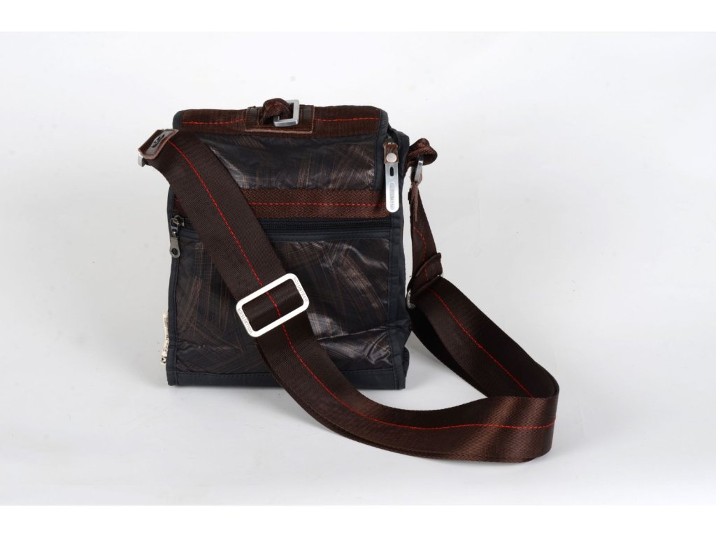 Textilní odlehčená taška přes rameno - crossbody v hnědé barvě, venkovní kapsa na zip, hlavní kapsa na zip, organizér, popruh přes rameno s volitelnou délkou, možno použít na klíče, mobilní telefon, doklady a další drobnosti, vhodné také na tablet.