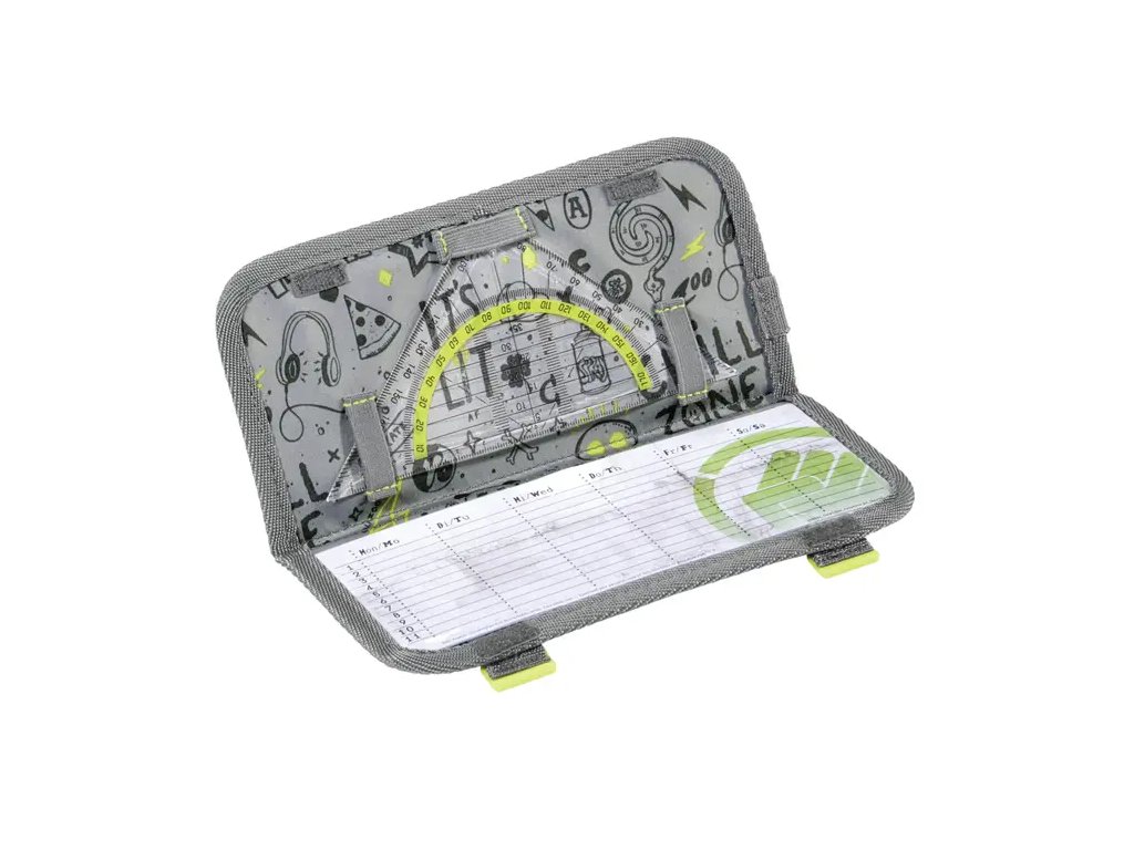 - dalších 7 větších poutek pro další příslušenství (např. pravítko, kružítko, guma, malý trojúhelník)