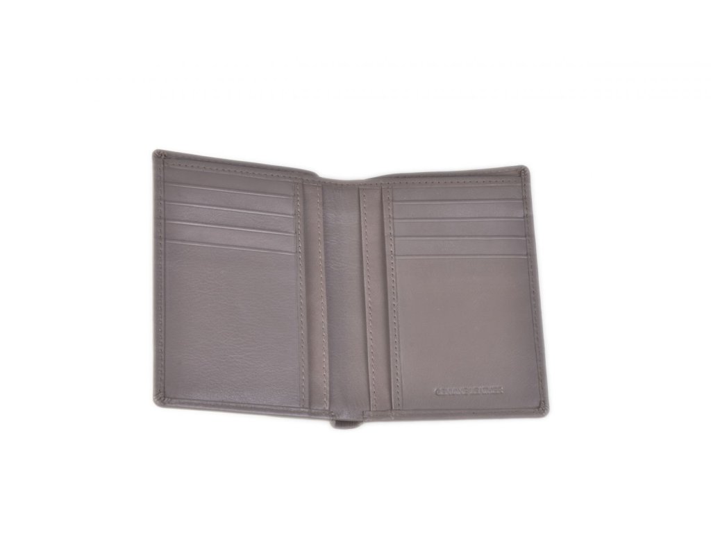 Pánská celokožená peněženka z kolekce italské značky Carraro v šedé barvě linie Olimpia, 2 přihrádky na bankovky, kapsa na doklady a organizér na platební karty.