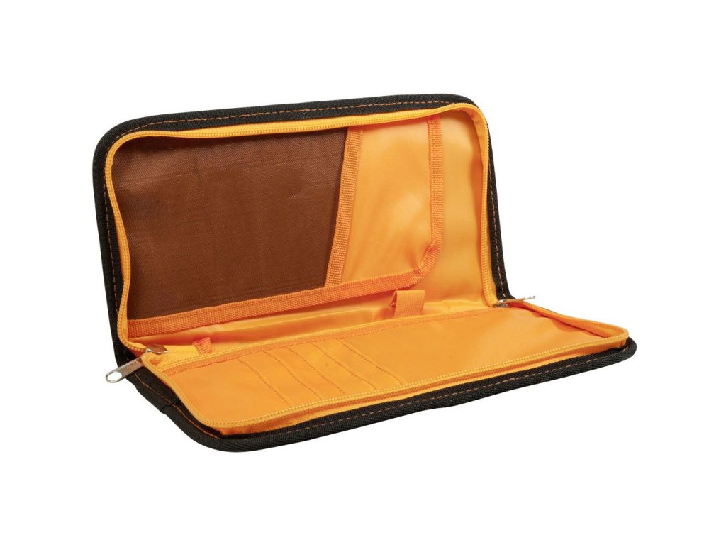 - s mnoha přihrádkami na čipové karty, letenky atd.