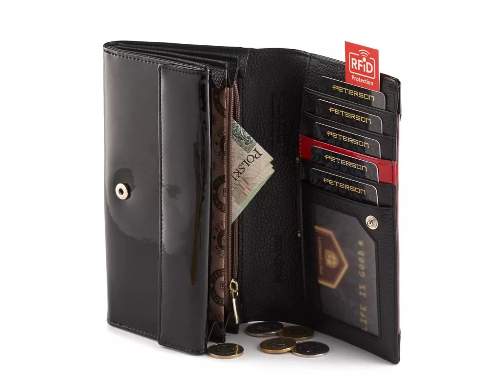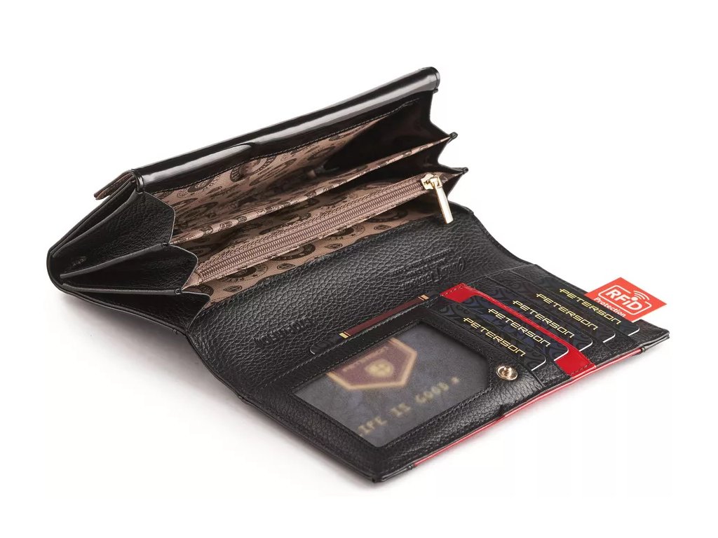 Černočervená dámská kožená peněženka s akcentem - Peterson