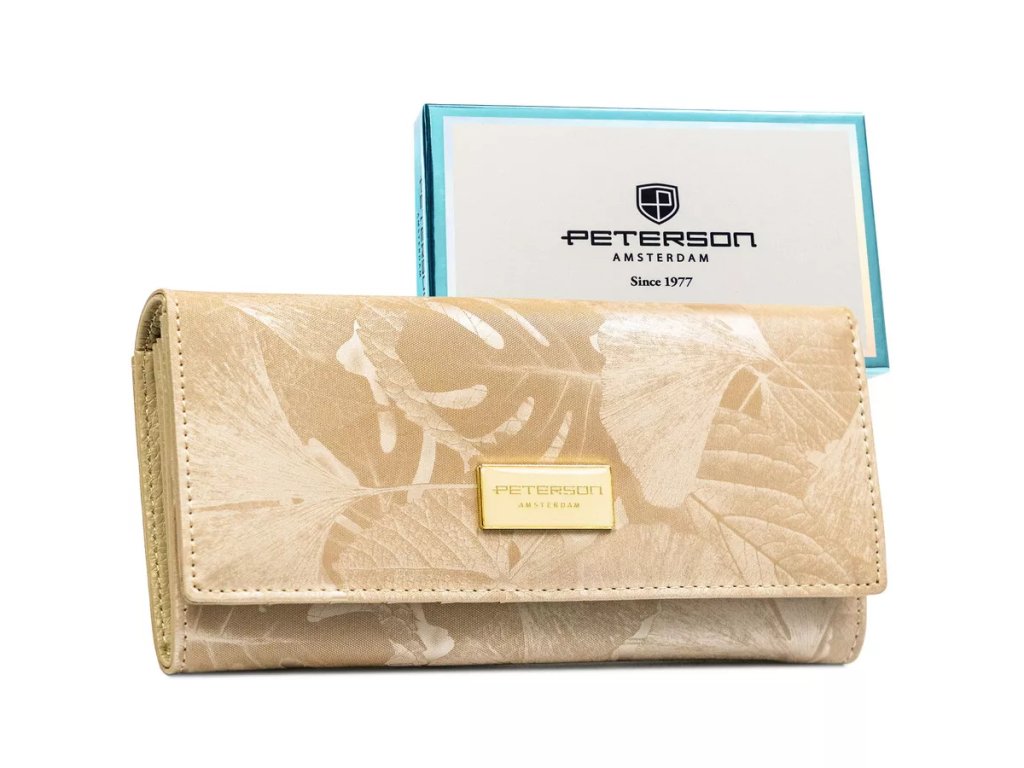 ato velká dámská peněženka od Petersonu je vyrobena z kombinace pravé a eko kůže. Pohodlný horizontální design se vyznačuje praktickou kapsou na mince se zapínáním na sponu a řadou přihrádek pro snadné uspořádání karet a dokumentů.