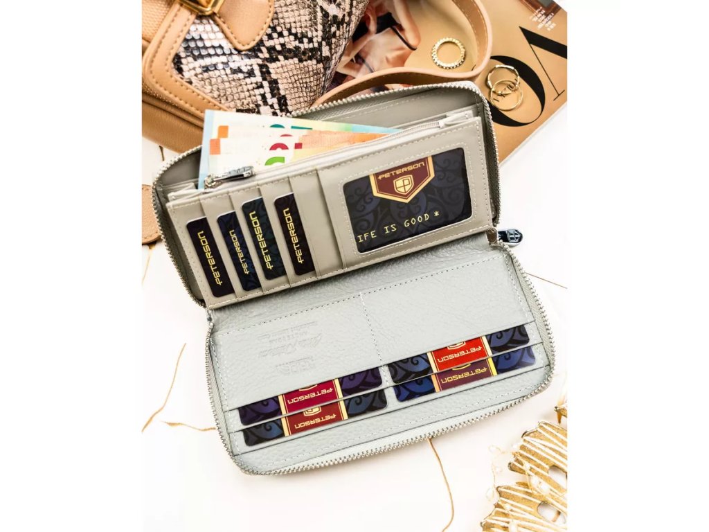 Horizontální peněženka Peterson je elegantní a praktický doplněk pro každodenní použití. Tato peněženka je navržena s ohledem na funkčnost a styl, což ji činí ideální pro ty, kteří hledají spolehlivý a módní způsob, jak uspořádat své osobní věci.