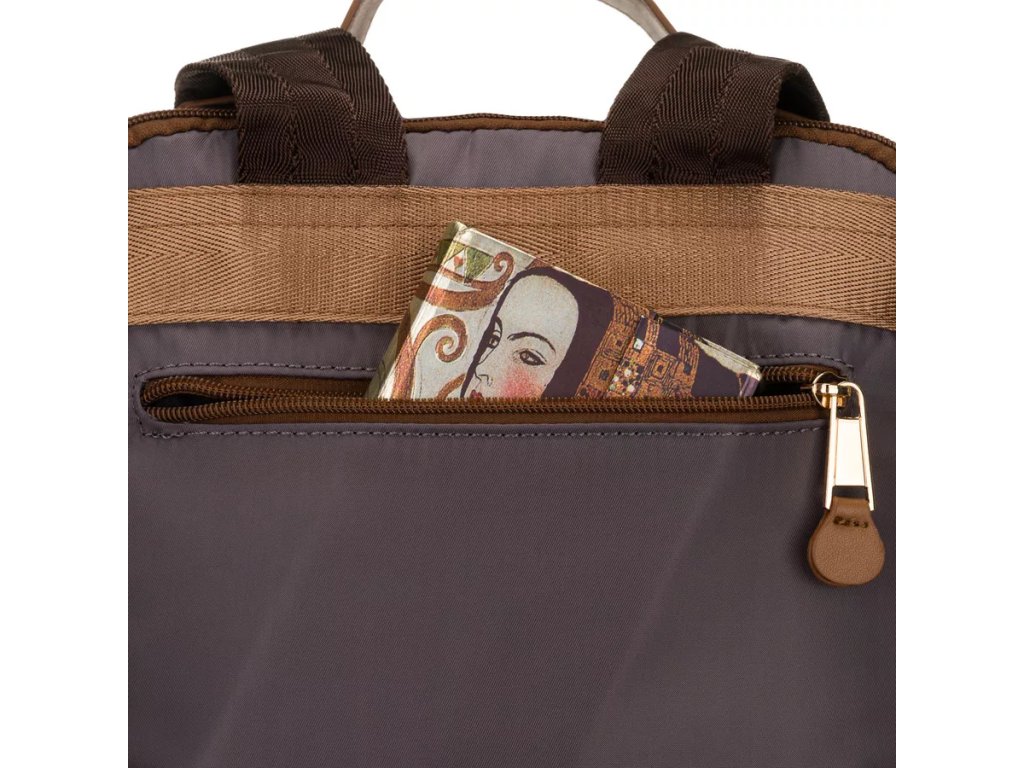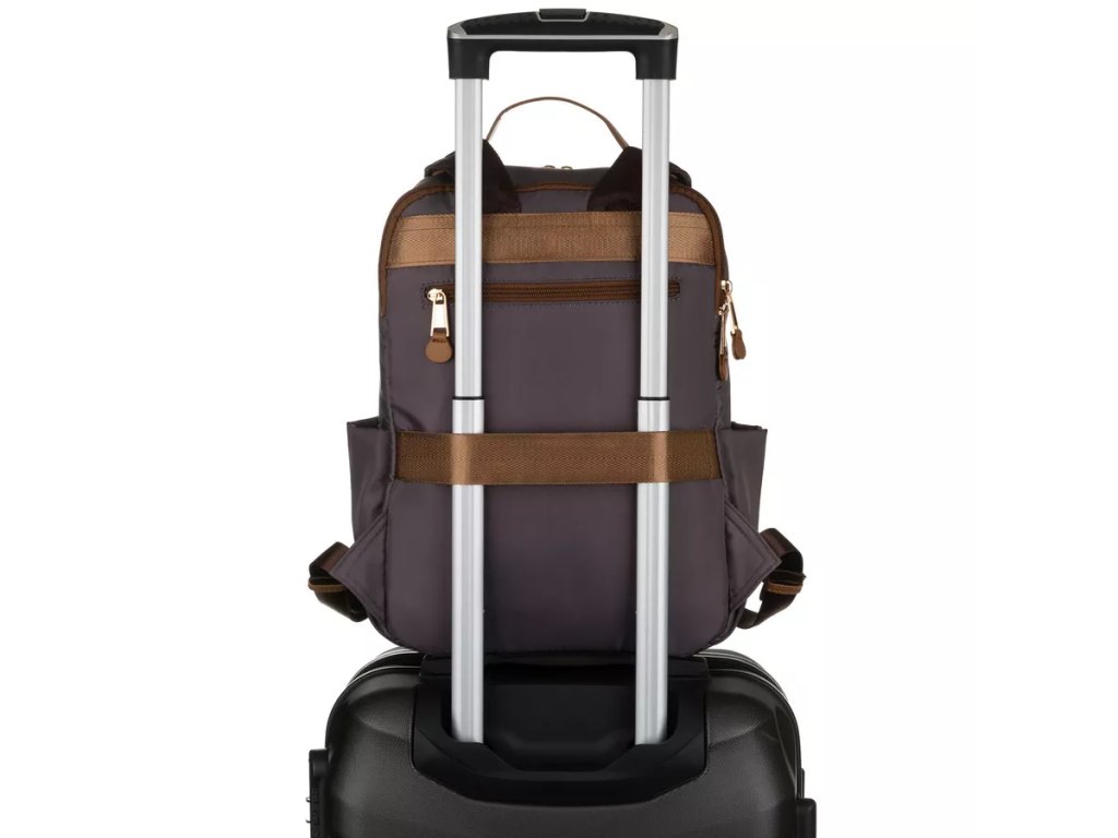 Pás k uchycení na rukojeť kufru: Praktický pás na zadní straně batohu umožňuje snadné připevnění na rukojeť kufru, což je výhodné při cestování a usnadňuje manipulaci s batohem na letišti nebo při přesunech.