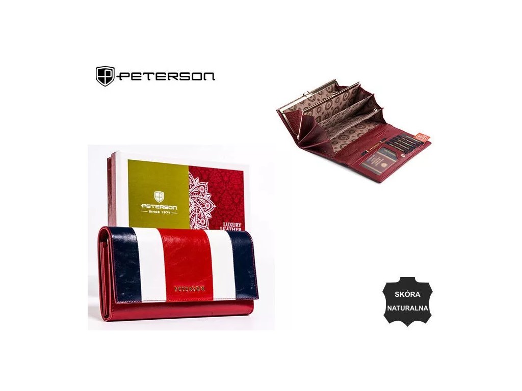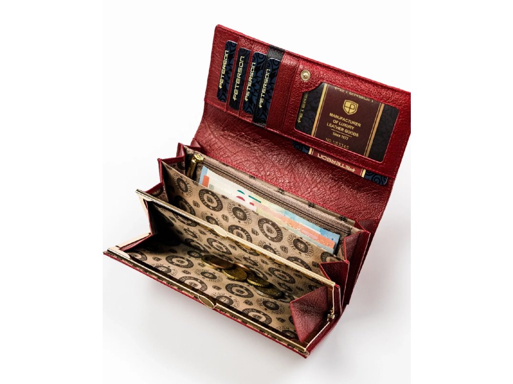 Krásná dámská peněženka Petersonje vyrobená z pravé kůže. Peněženka je středních rozměrů a je zabalena v dárkové krabičce výrobce. Peněženka poskytuje maximální úložné prostory a sloty pro Vaše kreditní karty, mince, bankovky, fotky a průkazy. 4x slot na kreditní karty nebo doklady, 1x větší foto,mincovník, 2x přihrádka na bankovky a další úložné prostory...