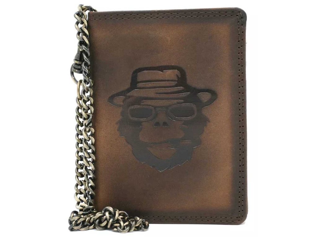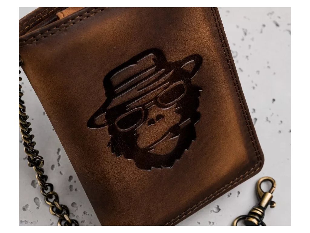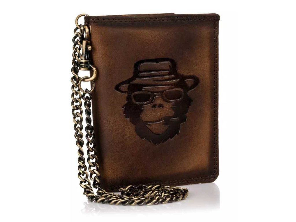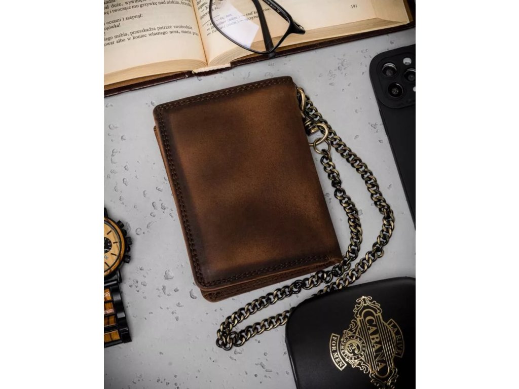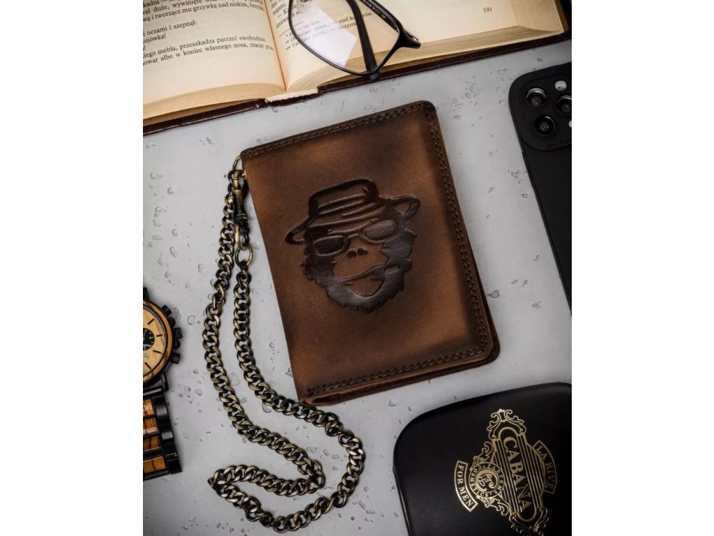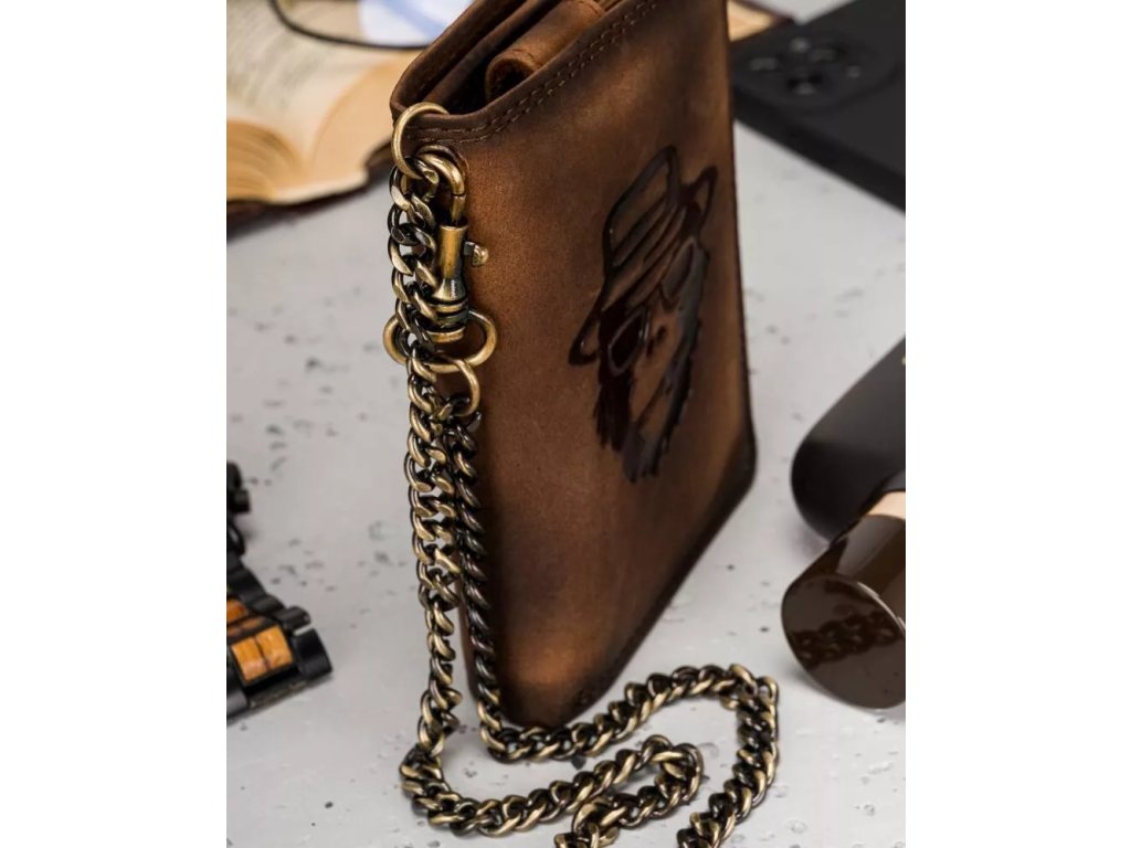 Vertikální pánská peněženka z nubukové kůže s reliéfním motivem a řetízkem