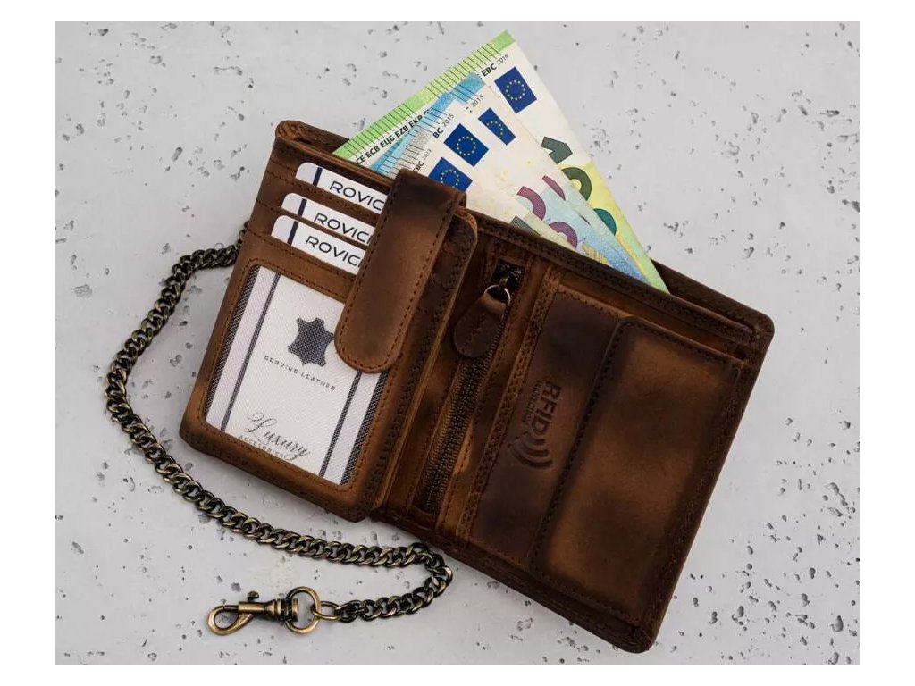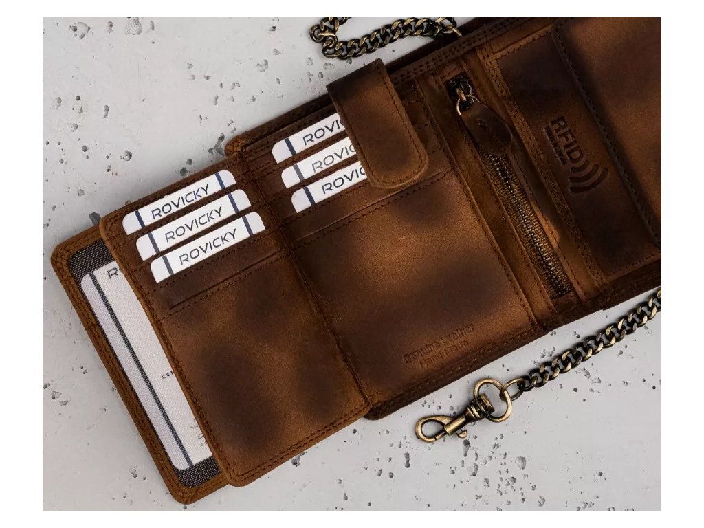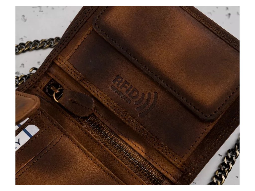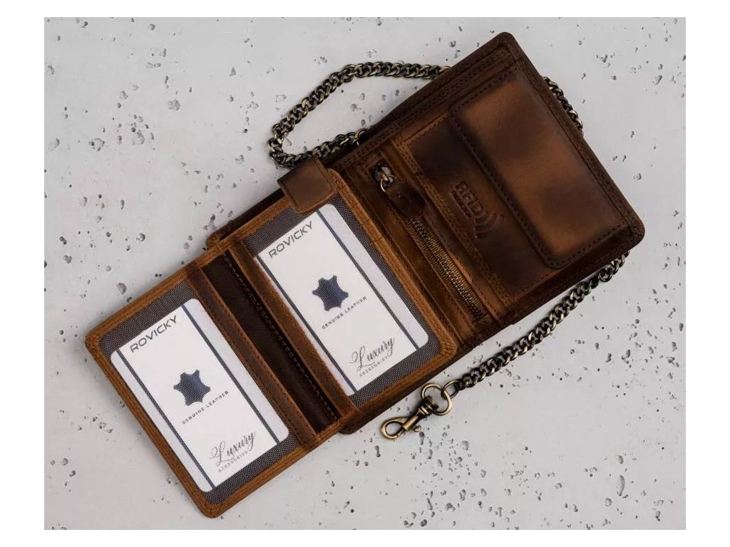 - Dlouhý řetěz | Peněženka je zavěšena na dlouhém a pevném řetízku, takže ji neztratíte! Užitečné zejména při jízdě na motorce!