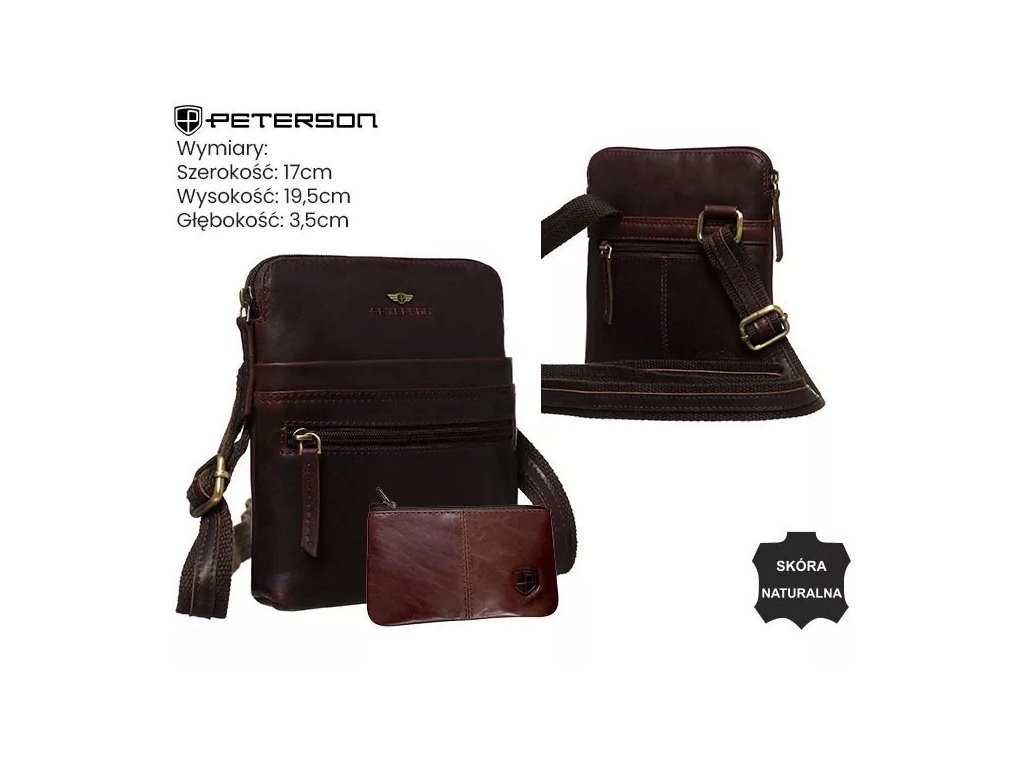 Elegantní sada od Petersonu: pánská kožená taška a kožené pouzdro na klíče. Stylové a praktické doplňky z pravé kůže, ideální pro každodenní nošení – kombinují pohodlí, odolnost a nadčasový charakter.