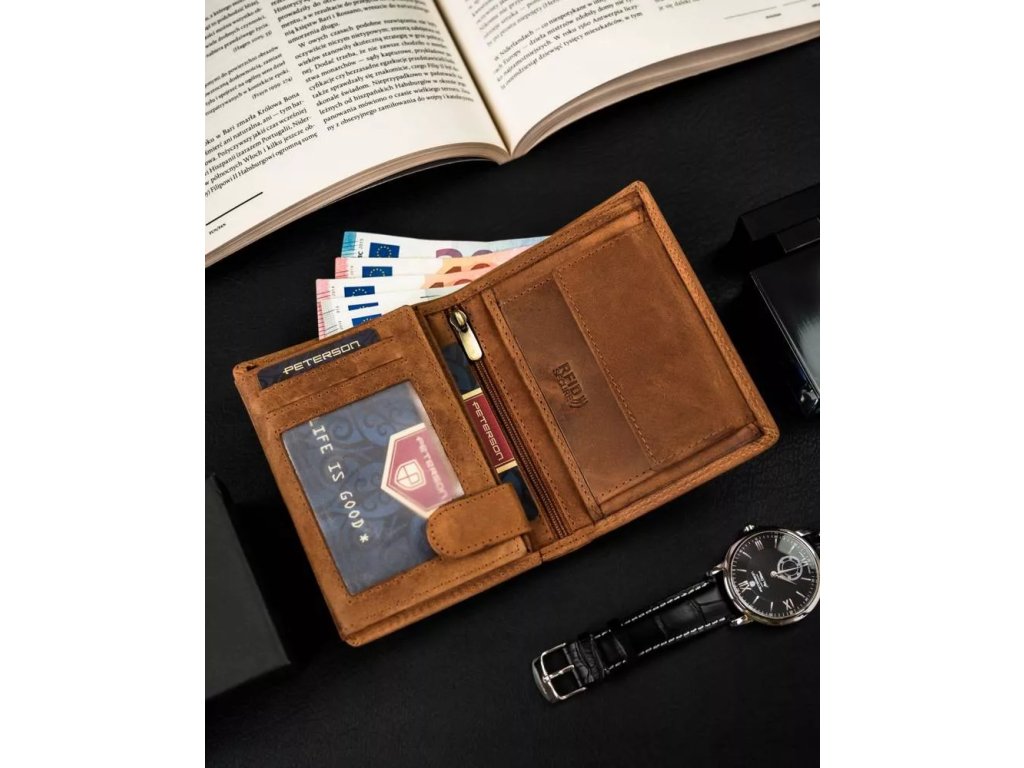 - Prostorný interiér | Peněženka má dostatek prostoru pro doklady a hotovost;