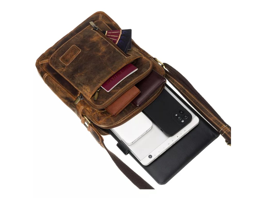 Pánská kožená taška Messenger s vnější kapsou na zip – Peterson