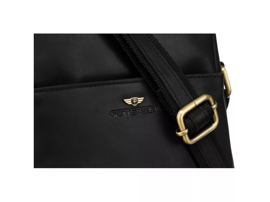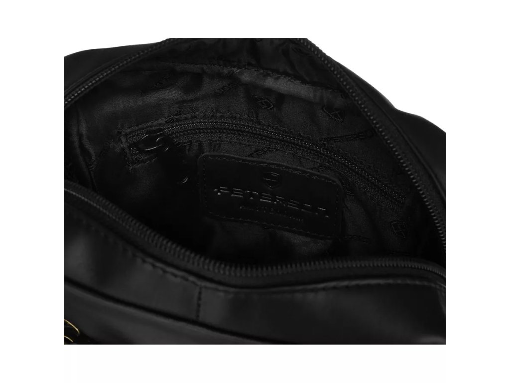 Taška má nastavitelný popruh , navíc vyztužený koženým lemem v barvě tašky, zapínání na pevné kovové přezky.
