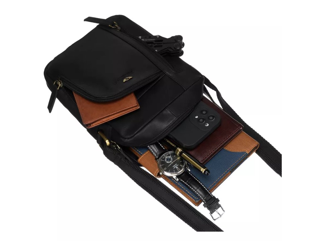 Taška má prostorný vnitřek a četné kapsy, které umožňují snadné uložení a uspořádání věcí, jako je telefon, peněženka, klíče nebo doklady. Pevný nastavitelný popruh umožňuje přizpůsobení postavě uživatele a zajišťuje tak komfort nošení po celý den.