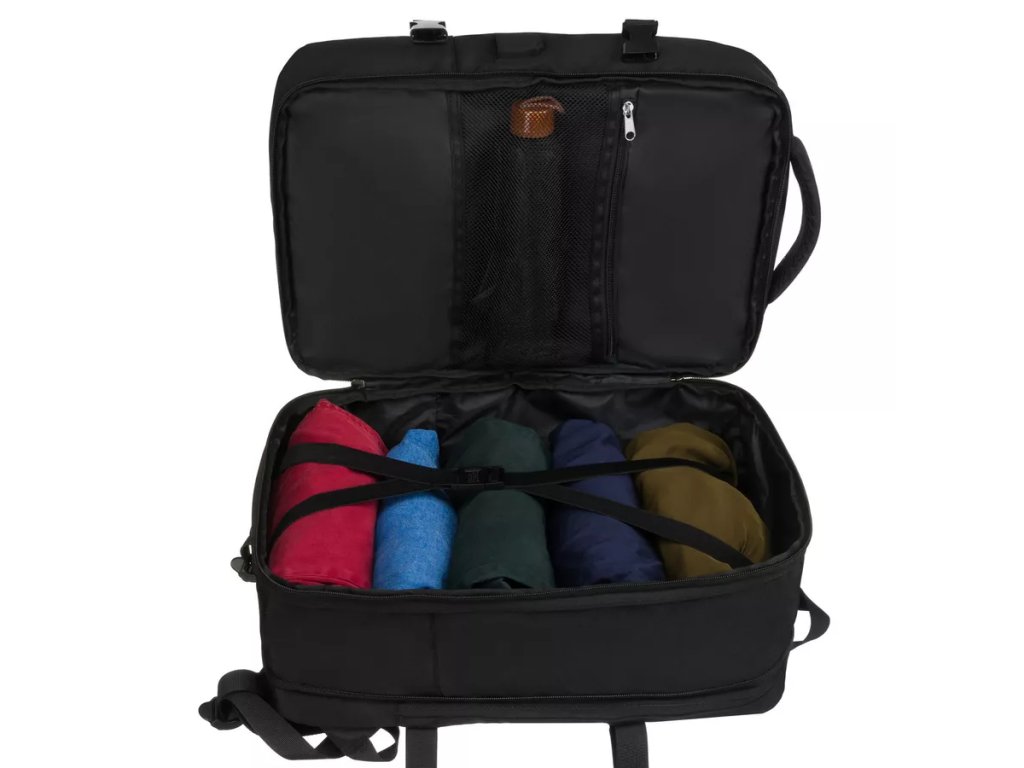 - Batoh je rozdělen na dvě poloviny, které se zavírají jako kufr. To umožňuje snadný přístup a organizaci věcí.
