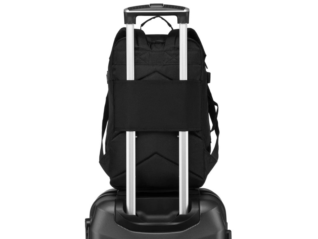 Batoh má nastavitelné výztuhy a pásek, který vám umožní připevnit batoh k výsuvné rukojeti kufru, což vám usnadní cestování. Textilní rukojeť pro přenášení batohu. Batoh má velký hlavní kapsu a přední kapsu. Batoh se otevírá zipem.