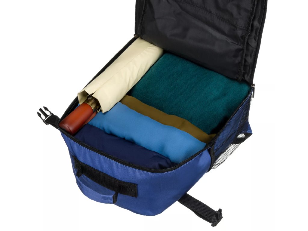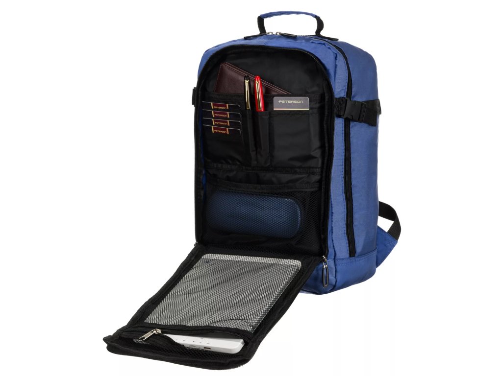 Batoh má nastavitelné výztuhy a pásek, který vám umožní připevnit batoh k výsuvné rukojeti kufru, což vám usnadní cestování. Textilní rukojeť pro přenášení batohu. Batoh má velký hlavní kapsu a přední kapsu. Batoh se otevírá zipem.