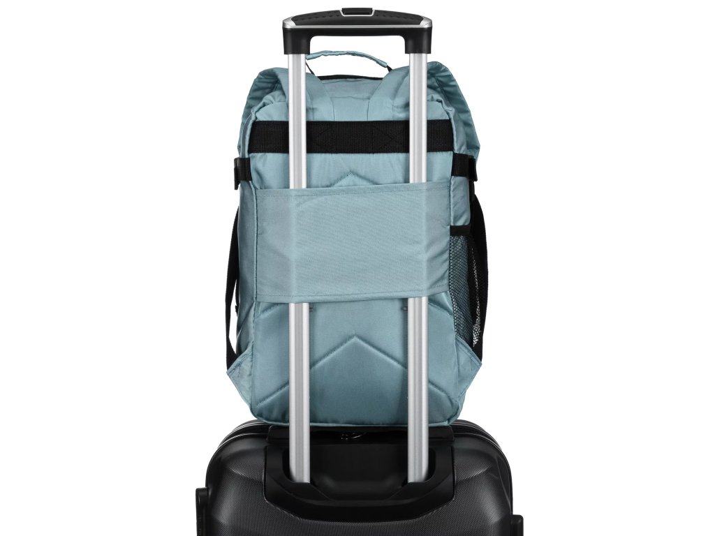 Batoh má nastavitelné výztuhy a pásek, který vám umožní připevnit batoh k výsuvné rukojeti kufru, což vám usnadní cestování. Textilní rukojeť pro přenášení batohu. Batoh má velký hlavní kapsu a přední kapsu. Batoh se otevírá zipem.