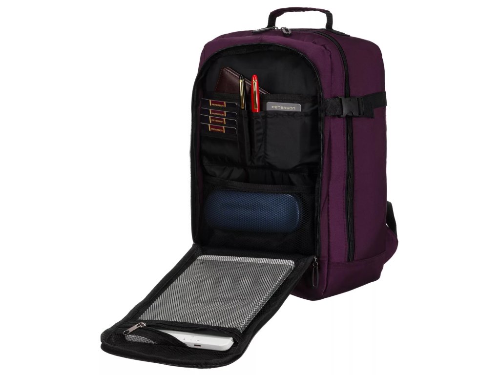 Batoh má nastavitelné výztuhy a pásek, který vám umožní připevnit batoh k výsuvné rukojeti kufru, což vám usnadní cestování. Textilní rukojeť pro přenášení batohu. Batoh má velký hlavní kapsu a přední kapsu. Batoh se otevírá zipem.