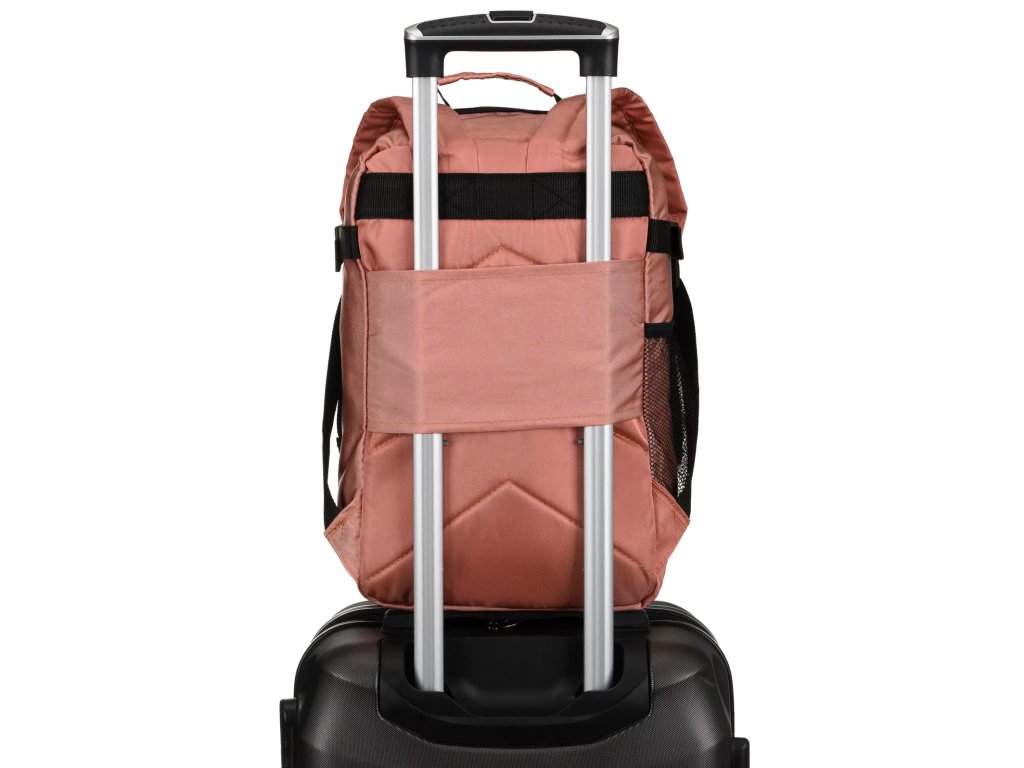 Batoh má nastavitelné výztuhy a pásek, který vám umožní připevnit batoh k výsuvné rukojeti kufru, což vám usnadní cestování. Textilní rukojeť pro přenášení batohu. Batoh má velký hlavní kapsu a přední kapsu. Batoh se otevírá zipem.