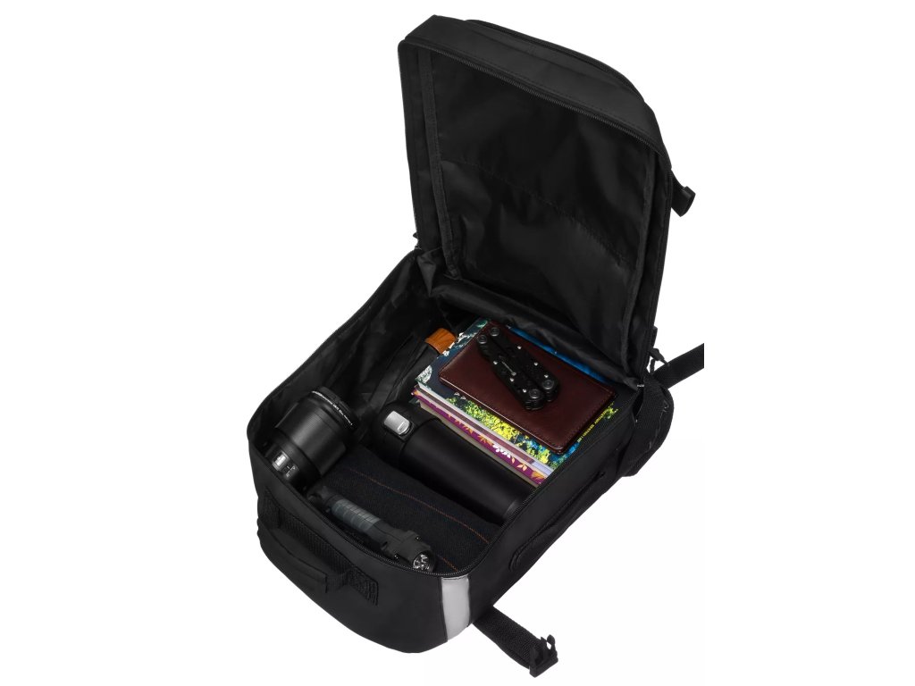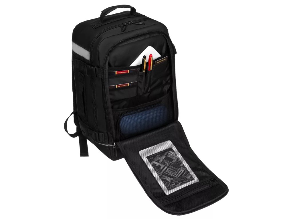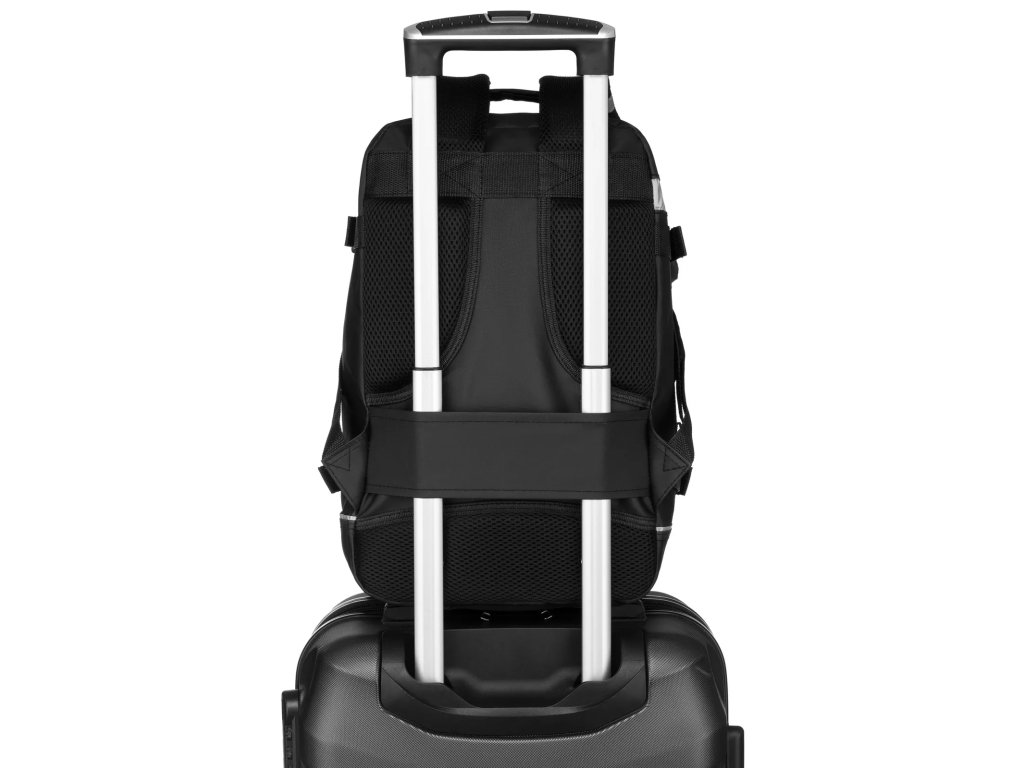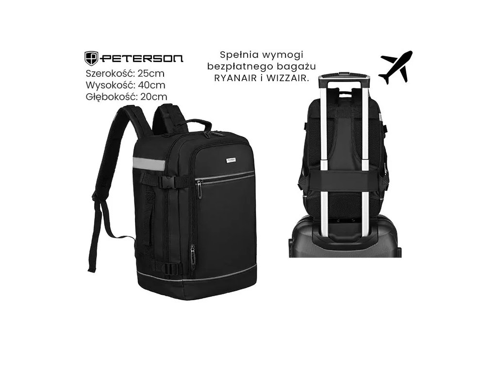 Batoh má nastavitelné výztuhy a pásek, který vám umožní připevnit batoh k výsuvné rukojeti kufru, což vám usnadní cestování. Textilní rukojeť pro přenášení batohu. Batoh má velký hlavní kapsu a přední kapsu. Batoh se otevírá zipem.