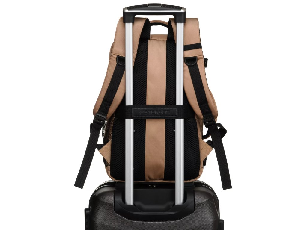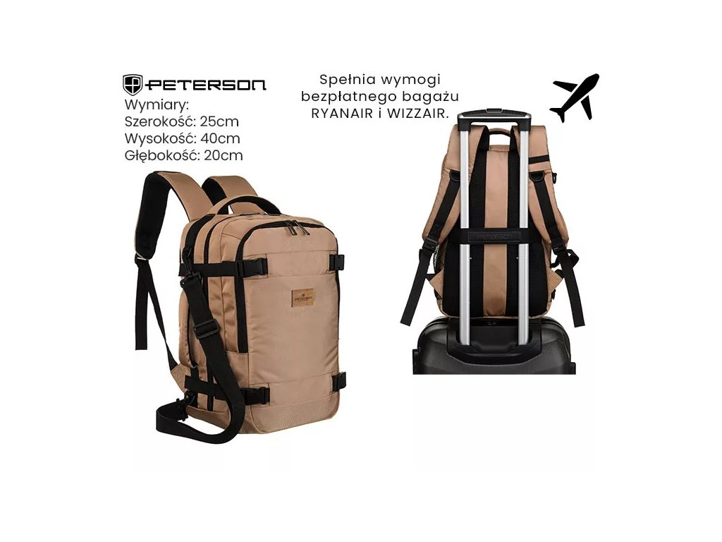 Batoh má nastavitelné výztuhy a pásek, který vám umožní připevnit batoh k výsuvné rukojeti kufru, což vám usnadní cestování. Textilní rukojeť pro přenášení batohu. Batoh má velký hlavní kapsu a přední kapsu. Batoh se otevírá zipem.