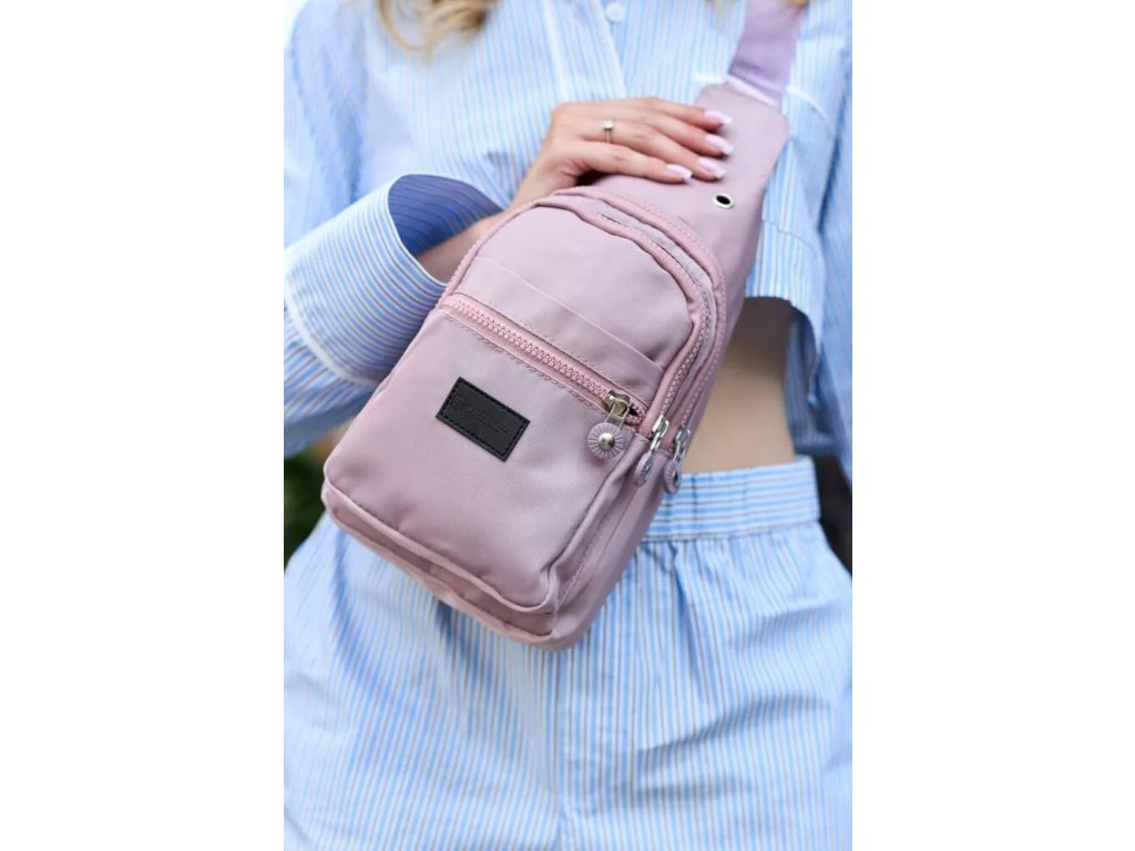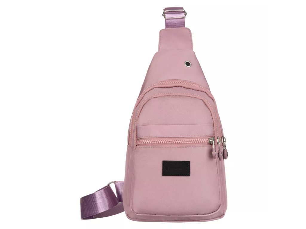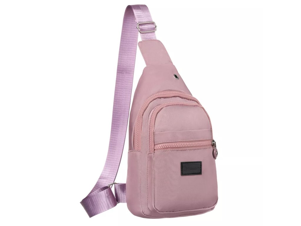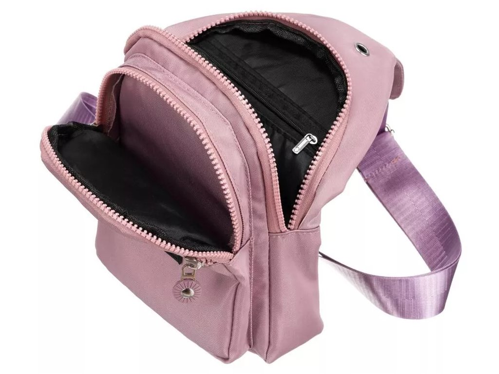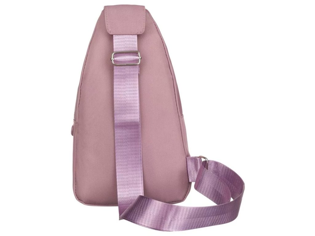Taška je zavěšena na 3,5 cm širokém popruhu s nastavitelnou délkou (74-140 cm).