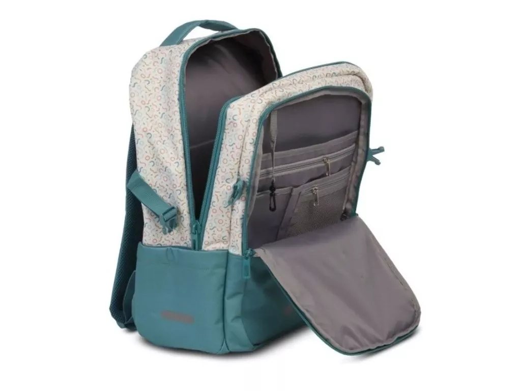 Batoh má nastavitelné výztuhy. Textilní rukojeť pro přenášení batohu. Batoh má velký hlavní kapsu a přední kapsu. Batoh se otevírá zipem.