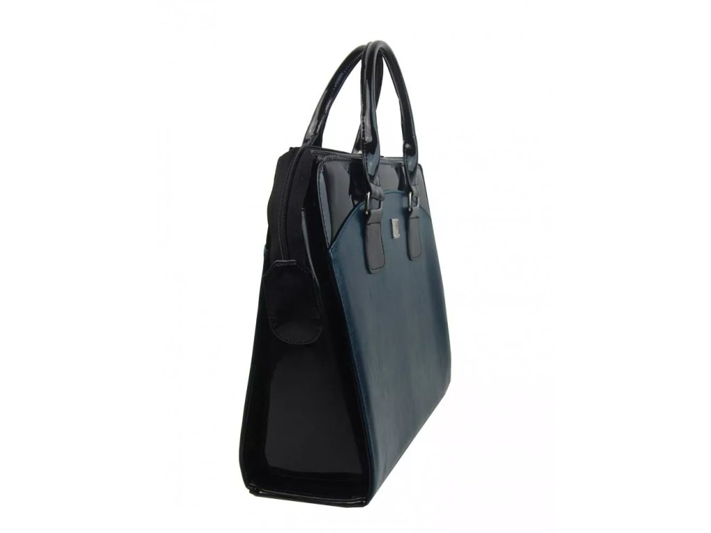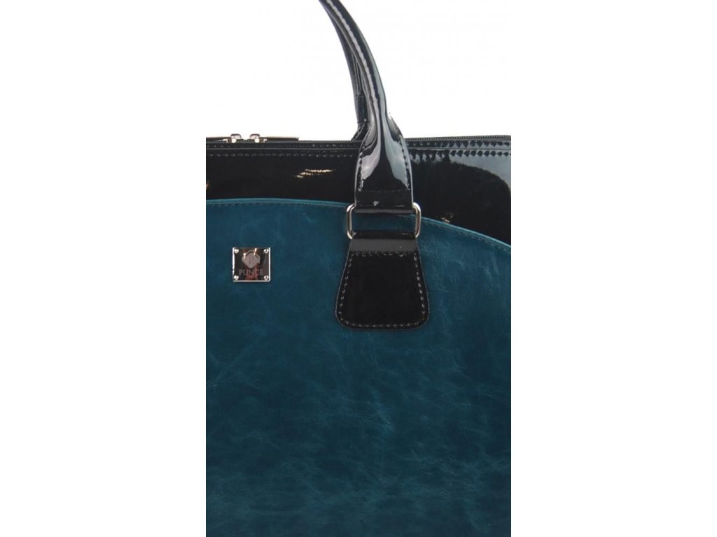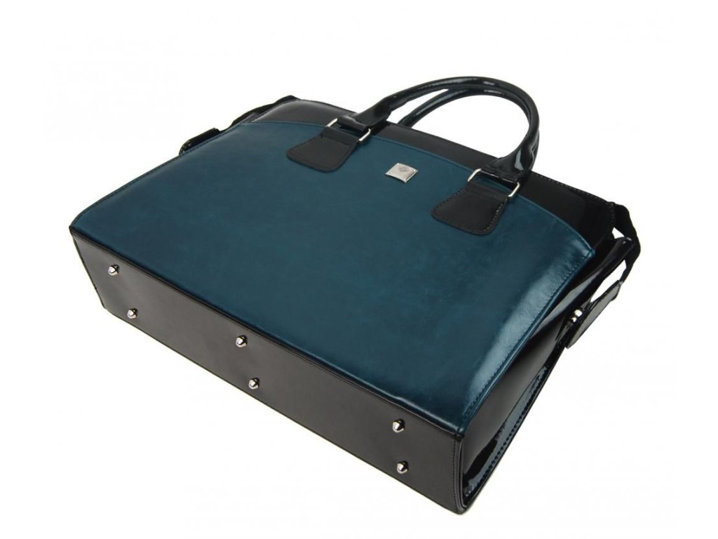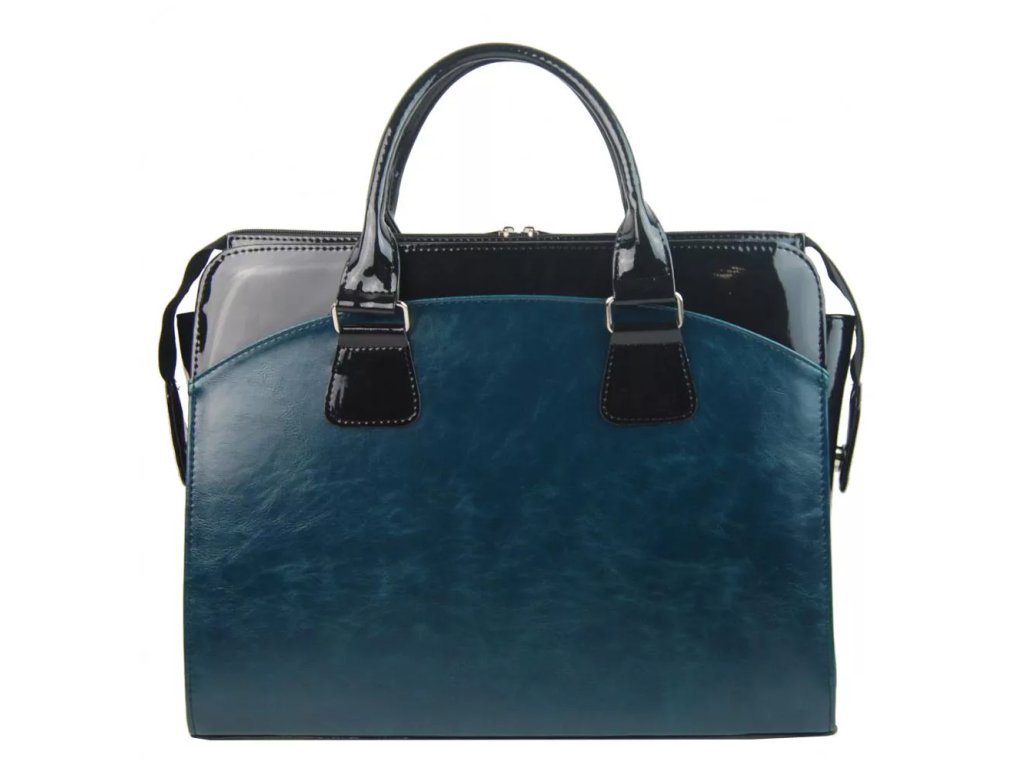 Konečně taška, která rozumí, že moderní žena potřebuje nosit celý svůj svět stylově! Tahle petrolejová krasavice v černém lakovaném korpusu není jen doplněk – je to módní statement s dokonalou organizací.