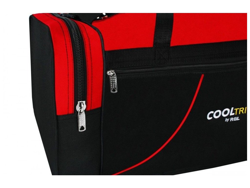 Cestovní taška COOL TRIP by RGL model 22B je ideální na dlouhé cesty. Pohodlný a praktický model je vyroben z materiálu CODURA. Navrženo pro nošení v ruce s uchy nebo na rameni díky odnímatelnému nastavitelnému popruhu. Hlavní komora se zapíná na dva samostatné zipy, má obdélníkovou klopu , která umožňuje snadné balení. Aby byl otvor sbalitelnější a mohli jste snadno zabalit větší množství a objemnější věci. Zipy jsou silné a pevné. Uvnitř tašky je prostor, do kterého se vejde spousta věcí. Má pět patek na ochranu proti oděru. Vyznačuje se také dodatečným prošíváním tašky, díky čemuž je odolnější. Na obou stranách jsou navíc prostorné kapsy, oddělené od hlavní komory tašky.