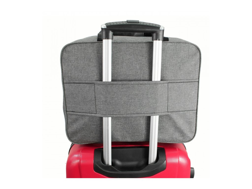 Prostorná a velmi odolná cestovní taška, která splňuje požadavky příručních zavazadel RYANAIR 40x25x20. Vyrobeno z vysoce kvalitního materiálu - codura 9500D - s vysokou odolností vůči povětrnostním podmínkám a také díky své vnitřní struktuře velmi lehká. V přední části tašky je široká kapsa na dokumenty, telefon atd. Taška může být přenášena v ruce nebo na rameni na dlouhém nastavitelném popruhu. Zadní část má opasek, díky kterému můžeme tašku připevnit k výsuvné rukojeti kufru. Taška je ideální pro cestování, práci i každodenní použití.