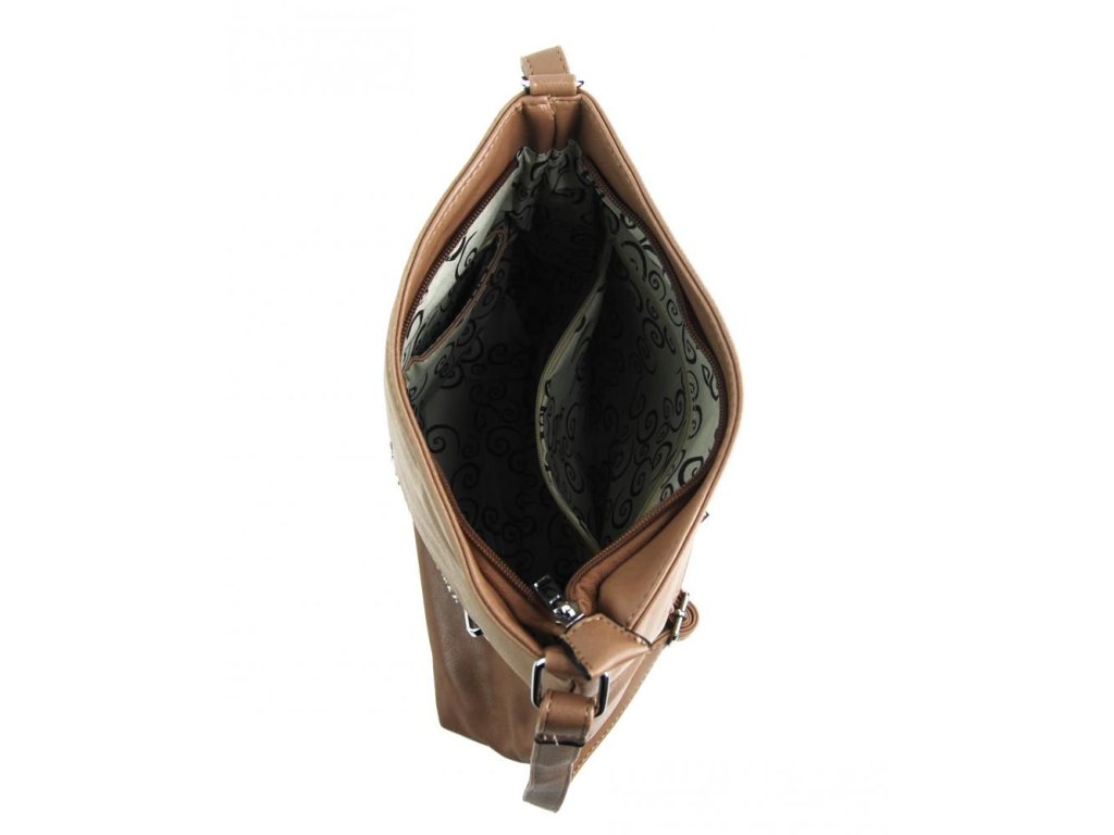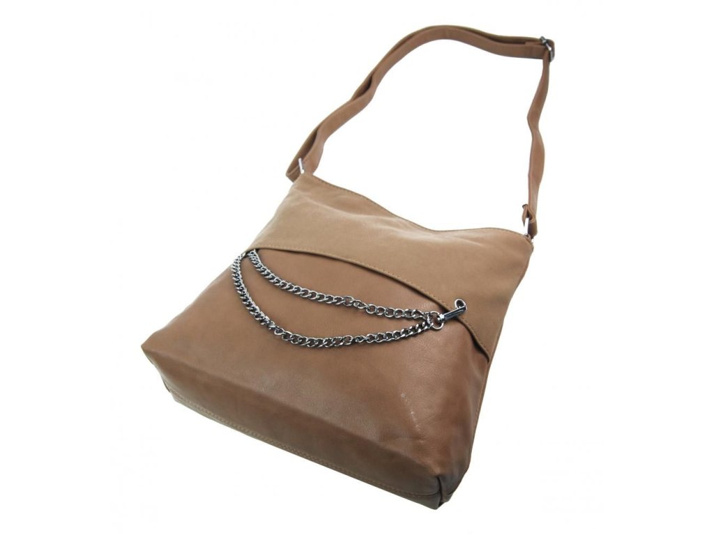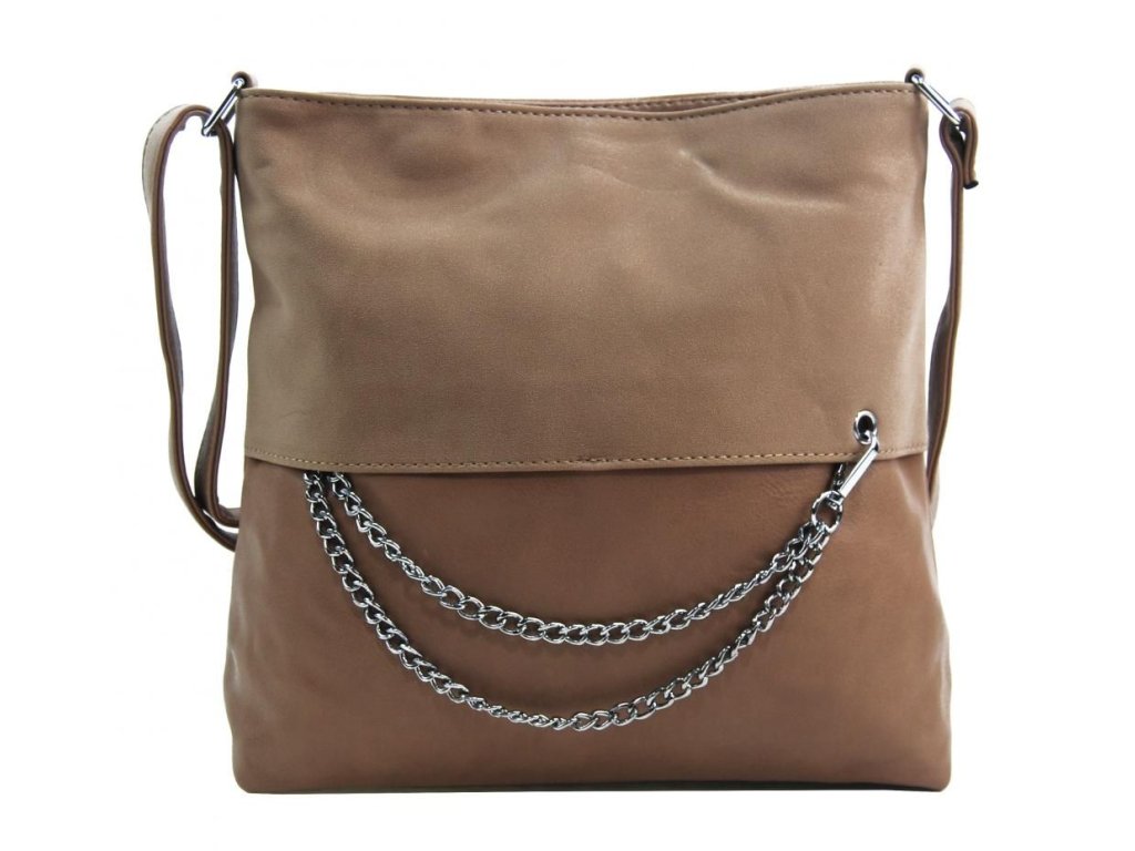 Moderní crossbody dámská kabelka pro denní všední nošení je vyrobená z kvalitní kombinace pololesklé a matné ekokůže s ozdobou stříbrného řetízku.
