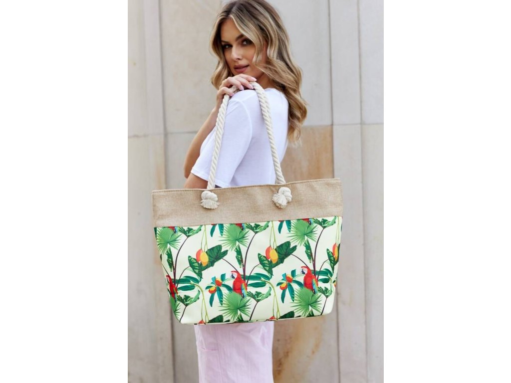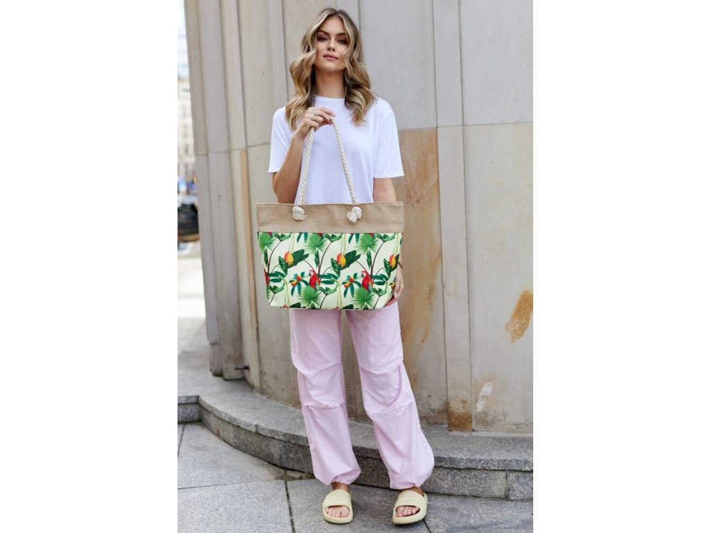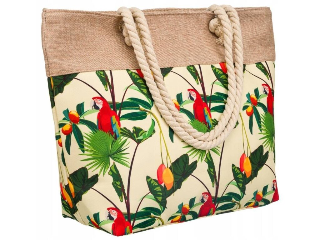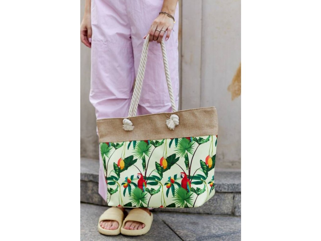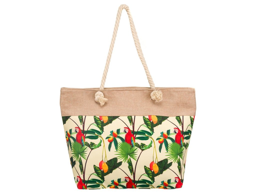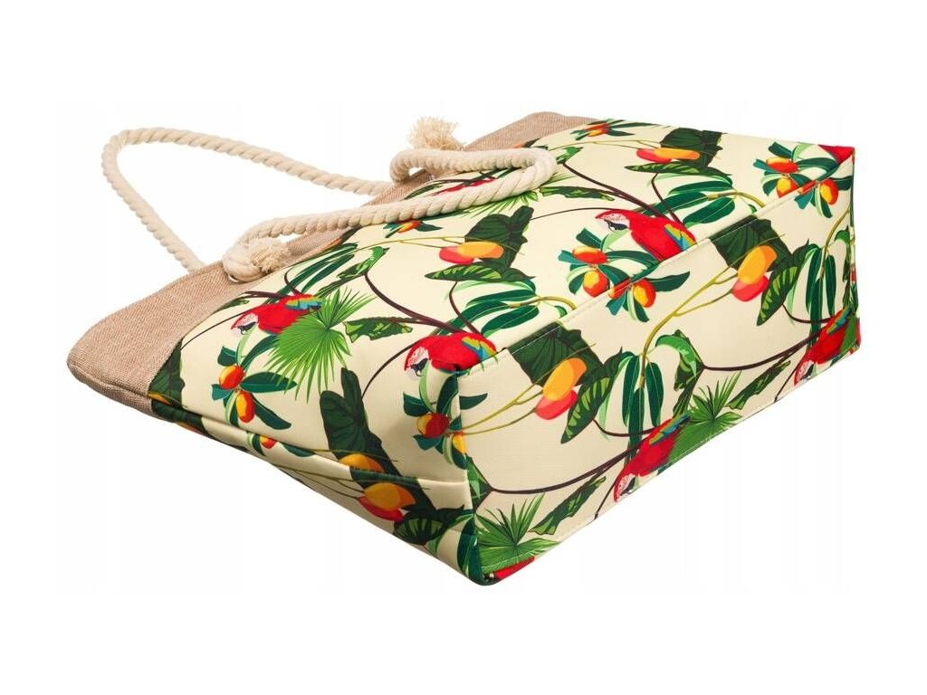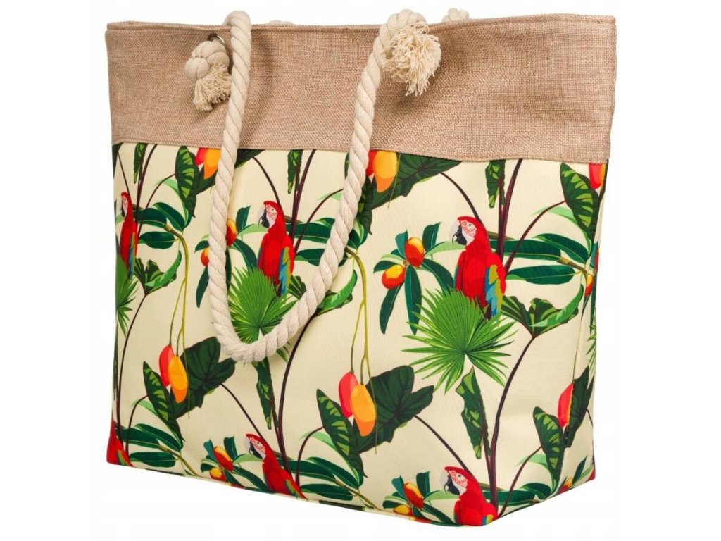 - Taška se zapíná na zip. Vyrobeno z kvalitního materiálu s rostlinným motivem s papoušky. Svrchu je doplněna popruhovým materiálem. Vybavena jednou velkou hlavní komorou a jednou malou kapsičkou.