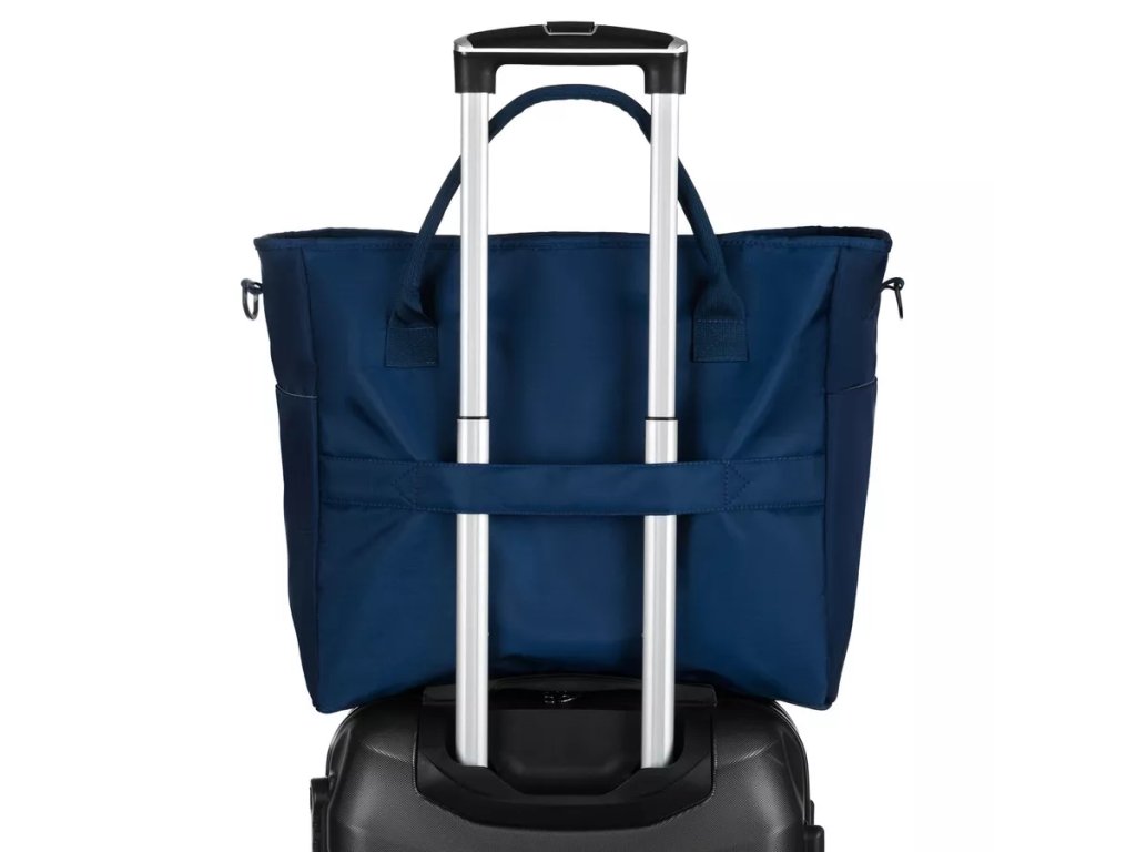 - Rukojeť pro připevnění k kufru: Praktická funkce, která umožňuje snadné připevnění tašky k madlu kufru, což usnadňuje manipulaci během cestování.