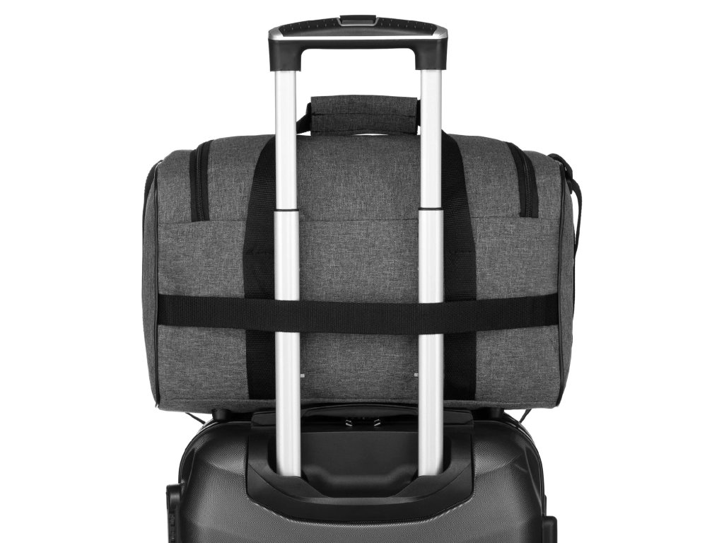 Taška má nastavitelný pásek, který vám umožní připevnit k výsuvné rukojeti kufru, což vám usnadní cestování. Textilní rukojeť pro přenášení. Taška má velký hlavní kapsu a přední kapsu. Taška se otevírá zipem.