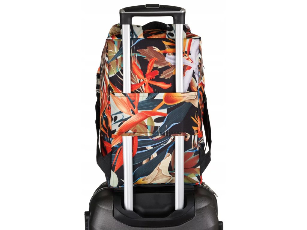 Batoh má nastavitelné výztuhy a pásek, který vám umožní připevnit batoh k výsuvné rukojeti kufru, což vám usnadní cestování. Textilní rukojeť pro přenášení batohu. Batoh má velký hlavní kapsu a přední kapsu. Batoh se otevírá zipem.