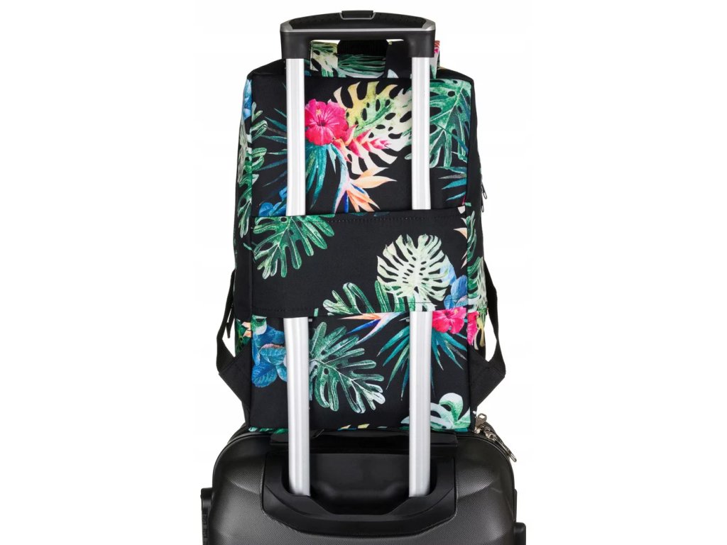Batoh má nastavitelné výztuhy a pásek, který vám umožní připevnit batoh k výsuvné rukojeti kufru, což vám usnadní cestování. Textilní rukojeť pro přenášení batohu. Batoh má velký hlavní kapsu a přední kapsu. Batoh se otevírá zipem.