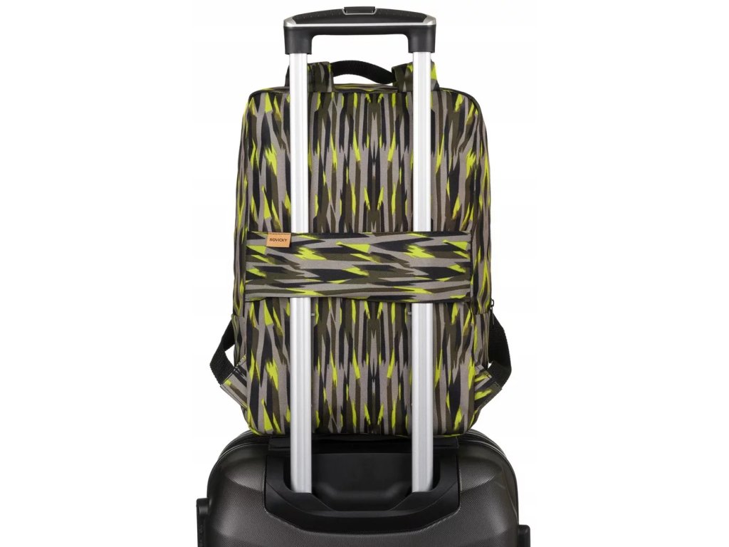 Batoh má nastavitelné výztuhy a pásek, který vám umožní připevnit batoh k výsuvné rukojeti kufru, což vám usnadní cestování. Textilní rukojeť pro přenášení batohu. Batoh má velký hlavní kapsu a přední kapsu. Batoh se otevírá zipem.
