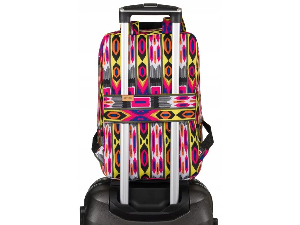 Batoh má nastavitelné výztuhy a pásek, který vám umožní připevnit batoh k výsuvné rukojeti kufru, což vám usnadní cestování. Textilní rukojeť pro přenášení batohu. Batoh má velký hlavní kapsu a přední kapsu. Batoh se otevírá zipem.