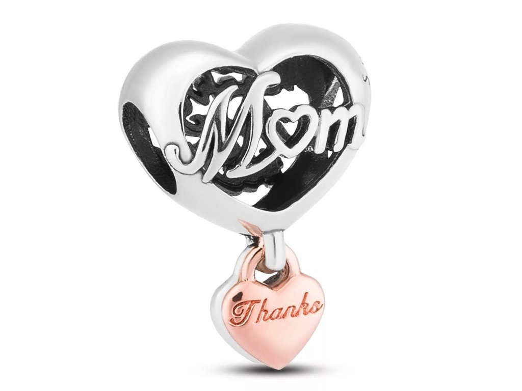 Přívěsek má tvar prolamovaného srdce , které nenápadně otevírá prostor pro emoce a vděčnost. Uprostřed srdce je složitý nápis: „Děkuji, že jsi tu pro mě, mami“, který nám připomíná vřelé city a pouto, které sdílíme s nejdůležitější osobou v našem životě – naší matkou.