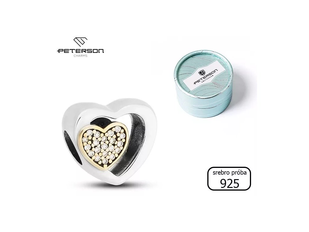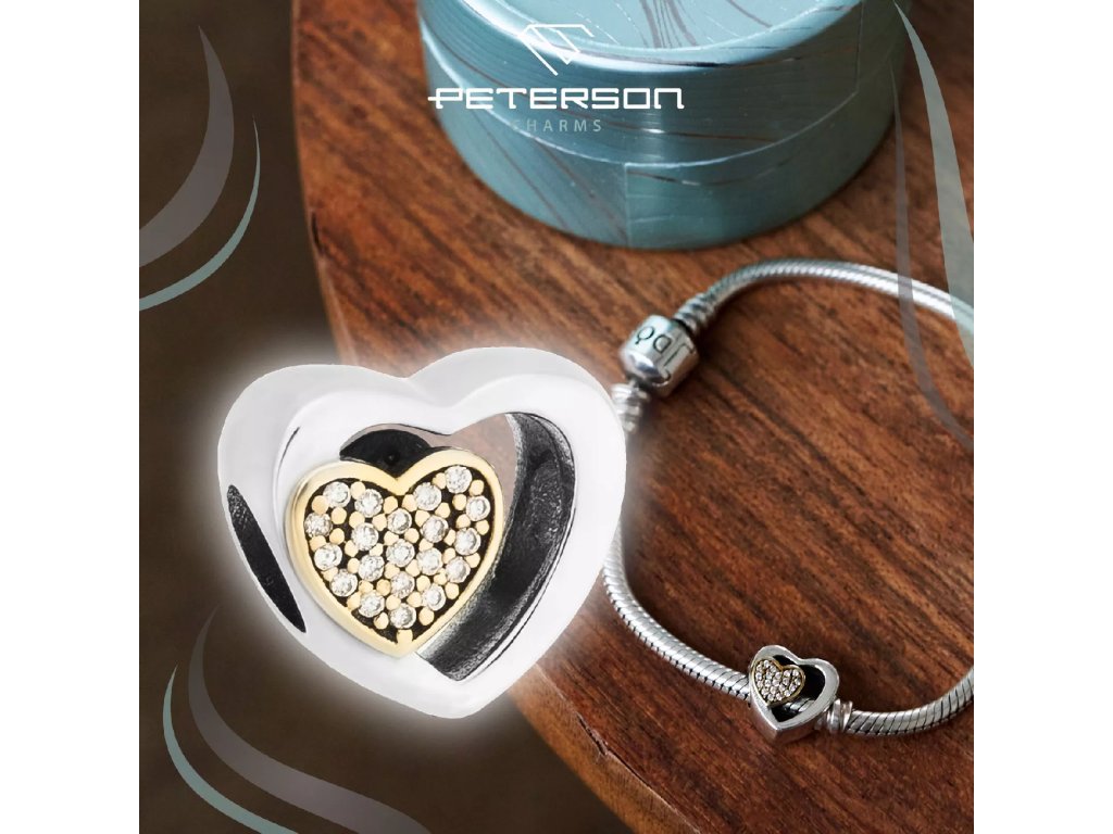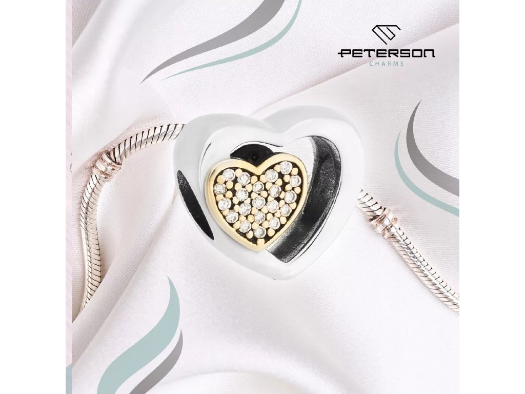Stříbrný přívěsek ve tvaru srdce se zlatým srdíčkem a kubickou zirkonií PETERSON® CHP-07
