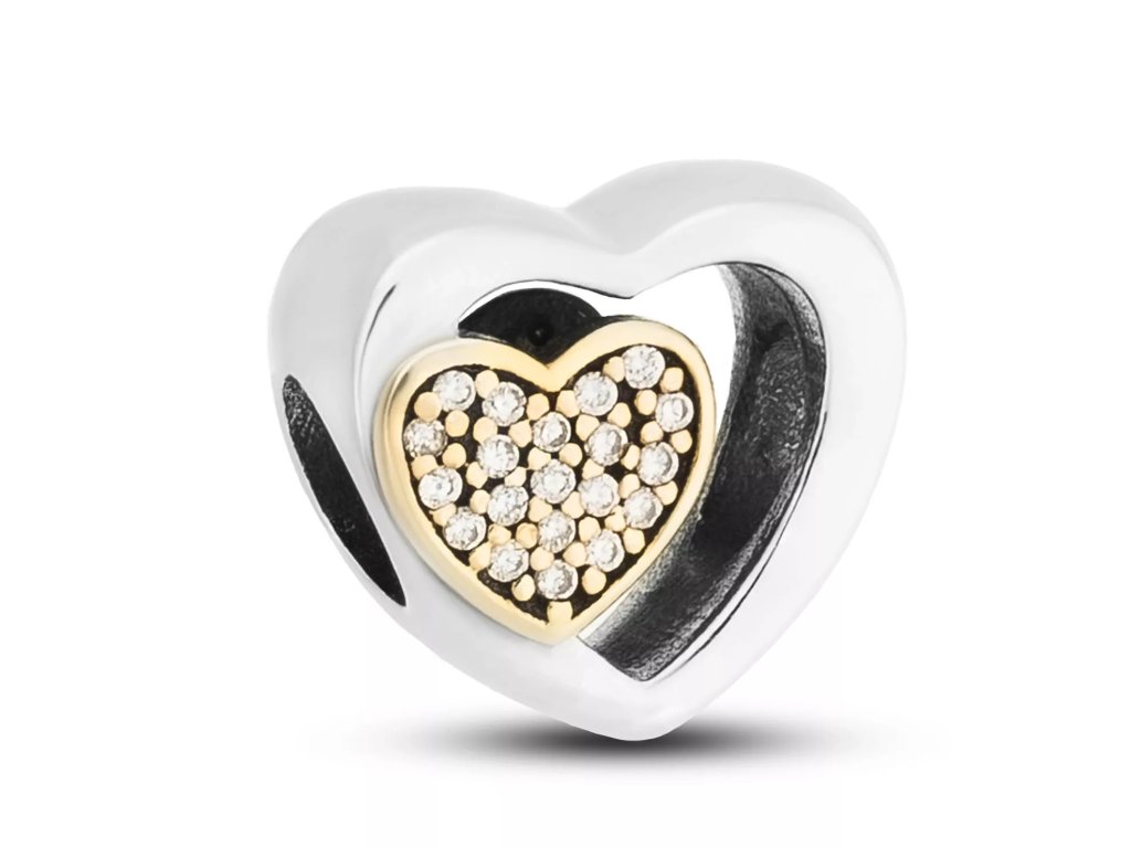 Stříbrný přívěsek ve tvaru srdce se zlatým srdíčkem a kubickou zirkonií PETERSON CHP-007
