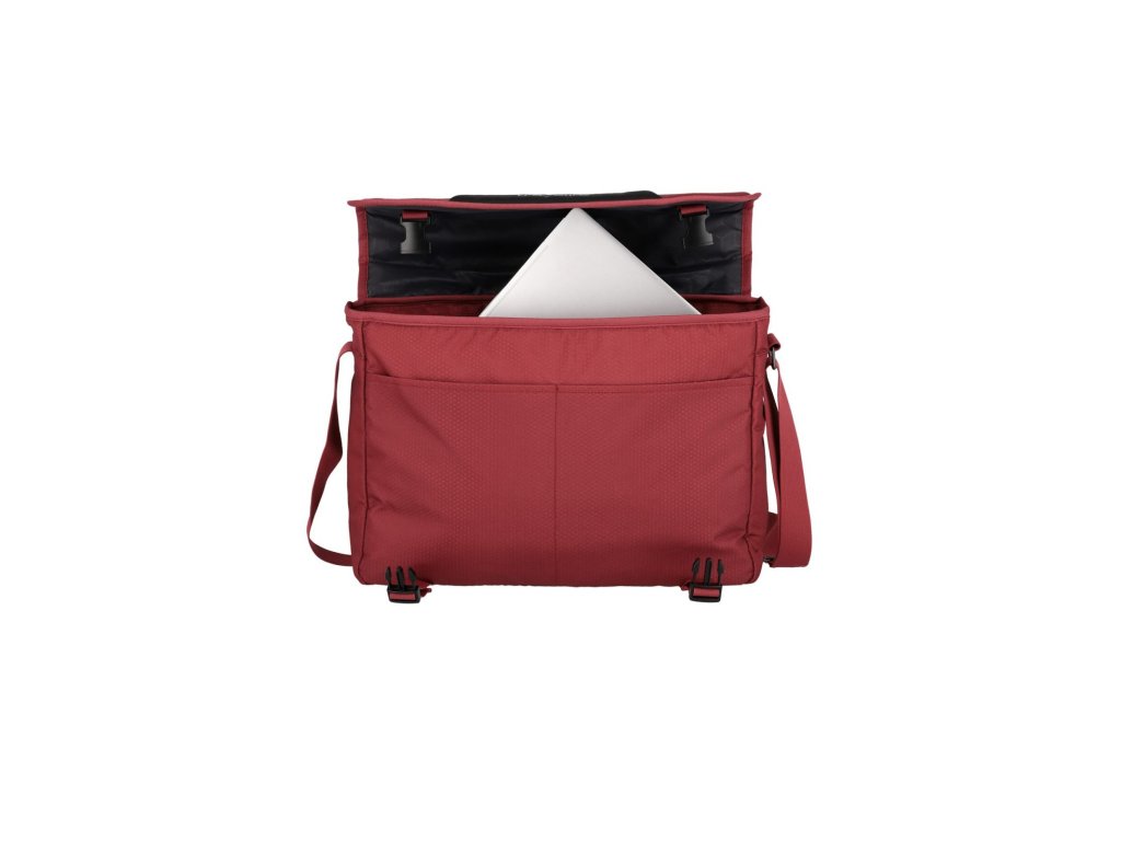 komfortně polstrovaná zadní strana hlavní komora se zapínáním na zip a klopu s přezkami samostatná přihrádka na 15,6" notebook velká vnitřní síťovaná kapsa na drobnosti kapsa na vizitky a organizér na psací potřeby 2 přihrádky na dokumenty formátu A5 velká vnější kapsa na zip na zadní straně tašky popruh pro nasunutí na madlo cestovního kufru nastavitelný ramenní popruh polstrovanou výstelkou proti otlakům