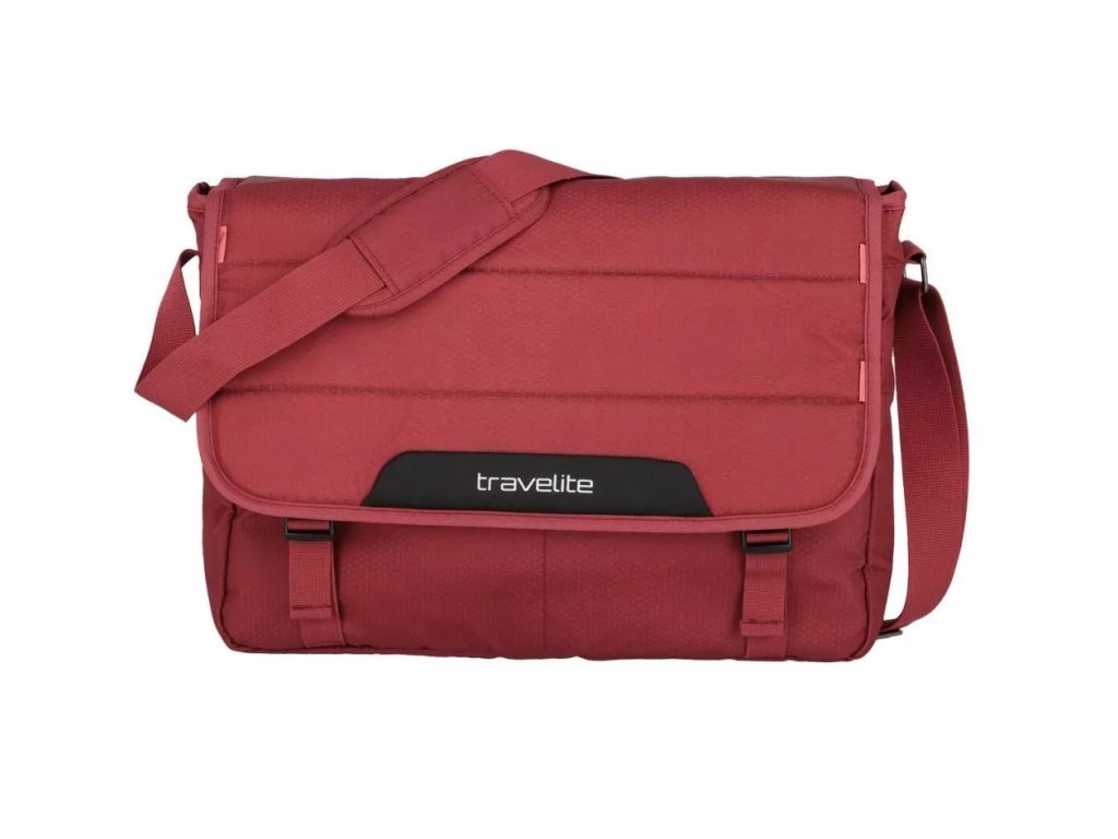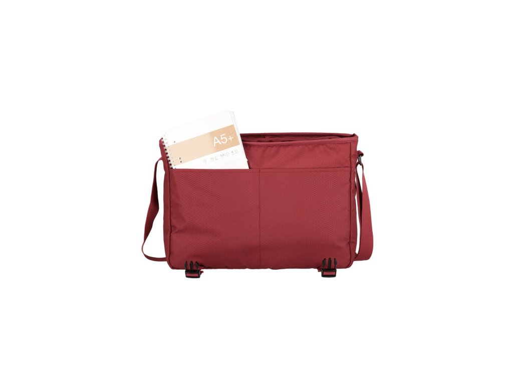 Extra lehká taška přes rameno s klopou na přezky, přihrádkou na 15,6" notebook a odnímatelným popruhem vyrobená z recyklovaného polyesteru.
