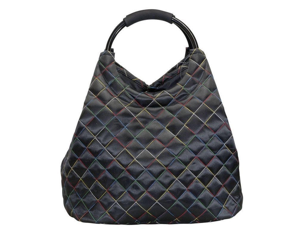 Tuto hedvábnou, třpytivou tašku pro volný čas vyrobenou z odolné, barevně prošívané saténové látky lze pouhým pohybem proměnit z prostorné XL nákupní tašky na tenkou městskou tašku.