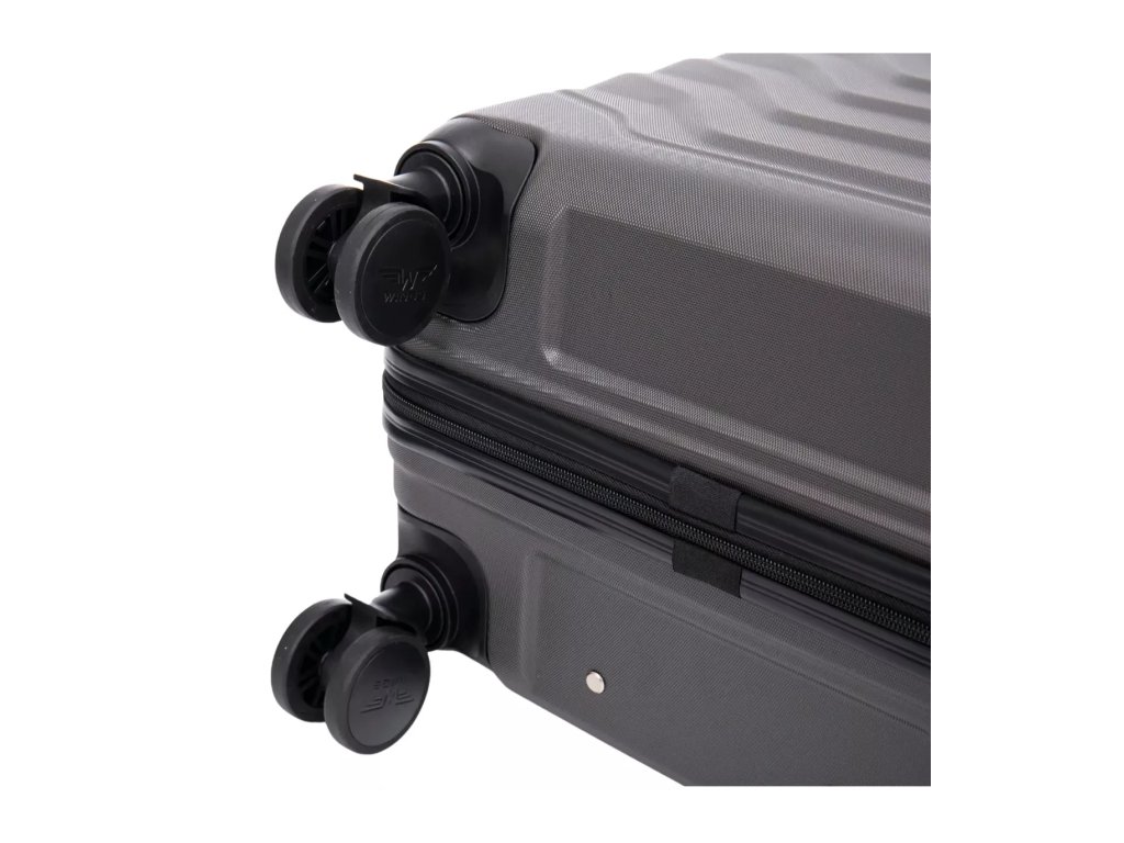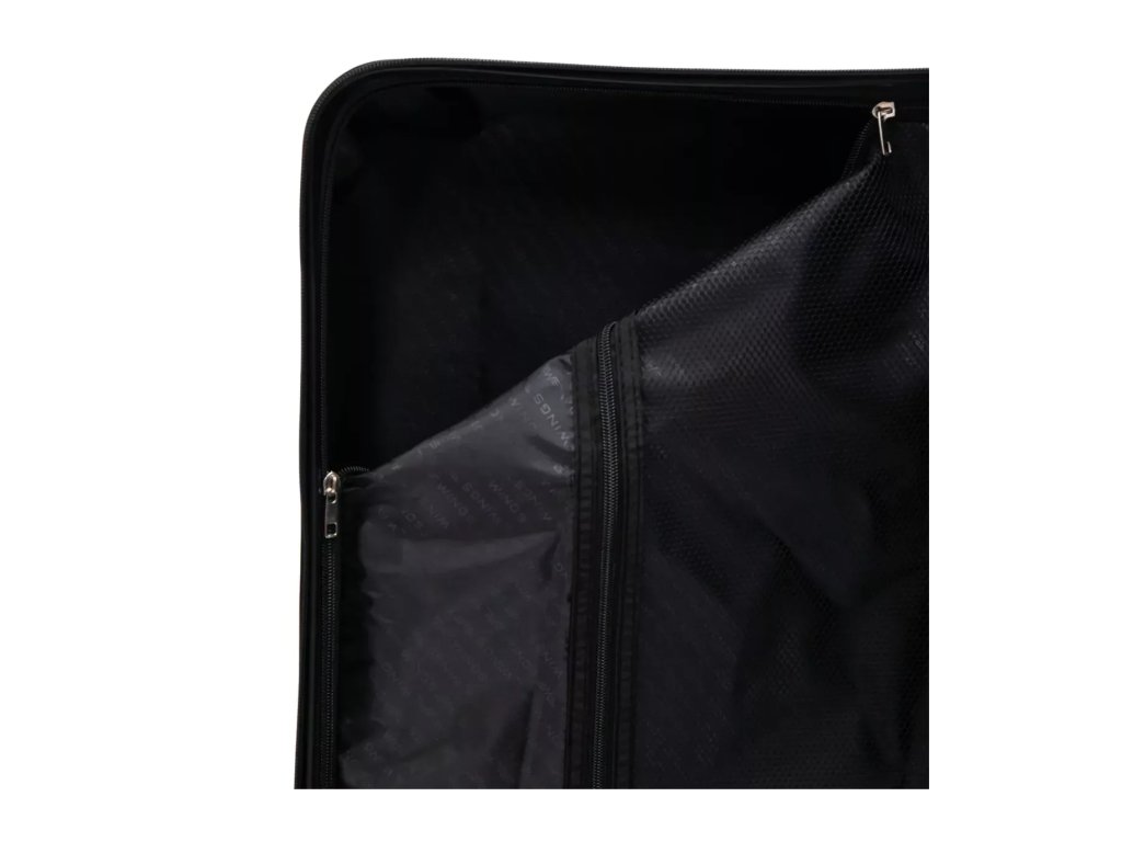 Oba jezdce zipu se dají zapojit do kódového zámku. Horní madlo je plastové. Celý pojízdný systém je umístěn uvnitř kufru pod textilní podšívkou, aby nedošlo k poškození systému při přepravě a je opatřen čtyřmi kolečky otočnými o 360°.